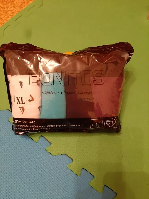 Посылка пришла за три недели ( почта России) . Трусы упакованы в отдельный пакет. 95% хлопок. Швы отличные, нитки не торчат . Размер подошёл. Будем смотреть как в носке. На фото цвет получился светлее.