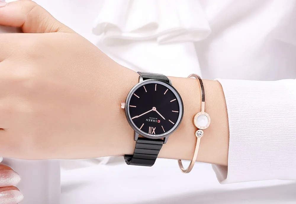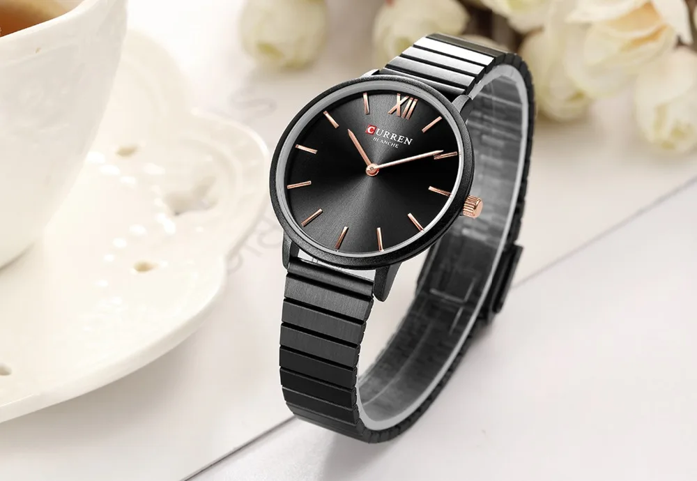 Часы CURREN женские, кварцевые, черные, стальные
