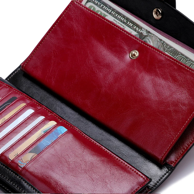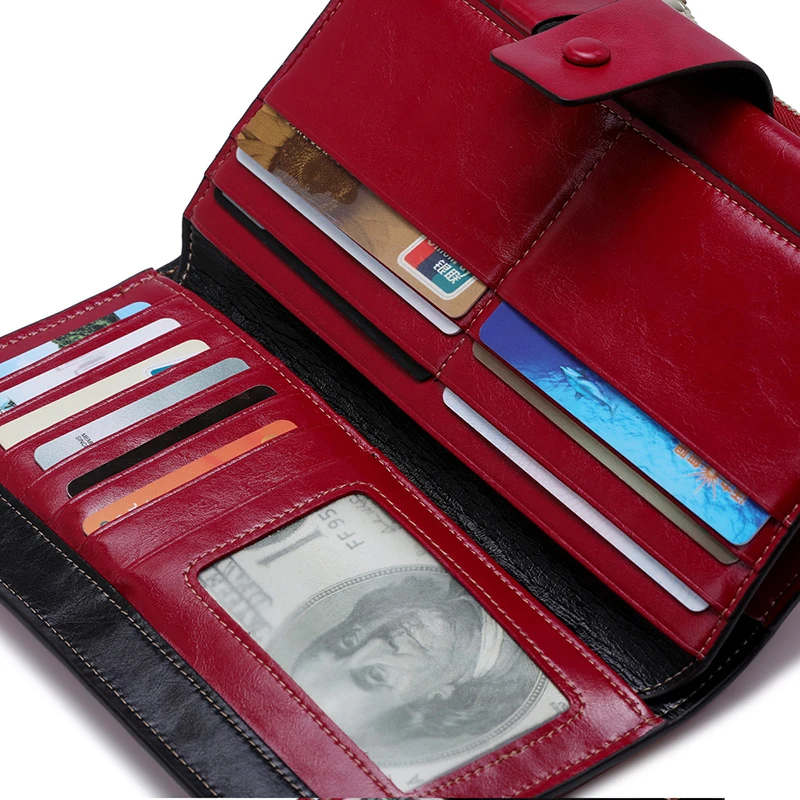 Кошельки женские из натуральной кожи, на молнии, с отделением для монет и карт