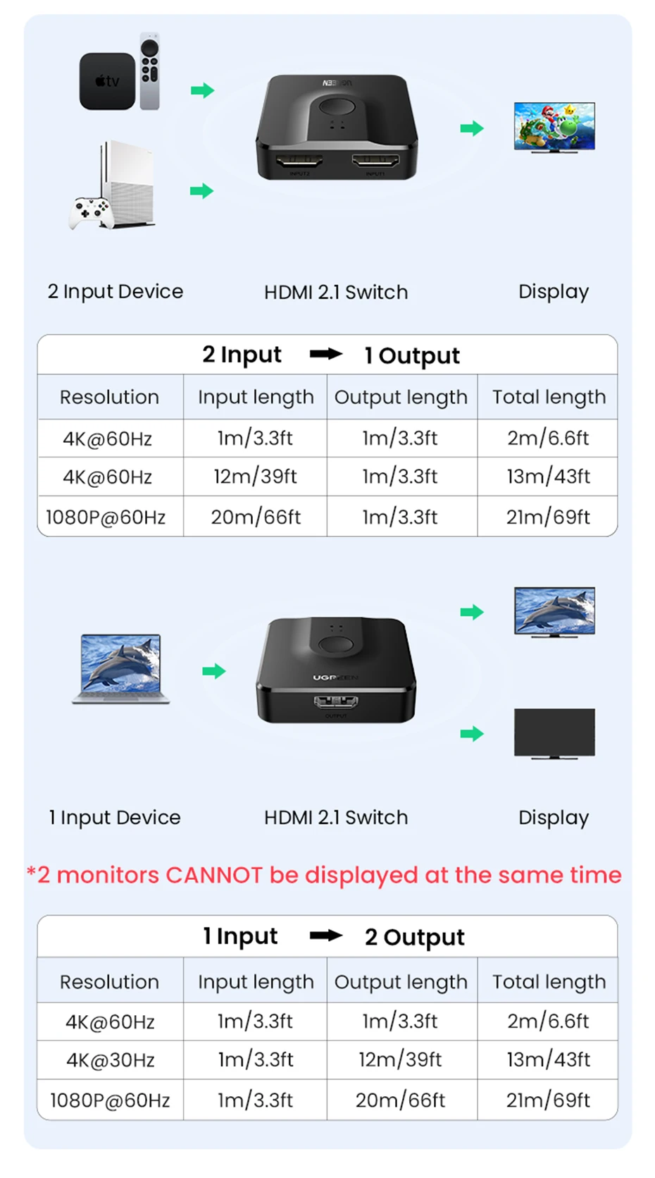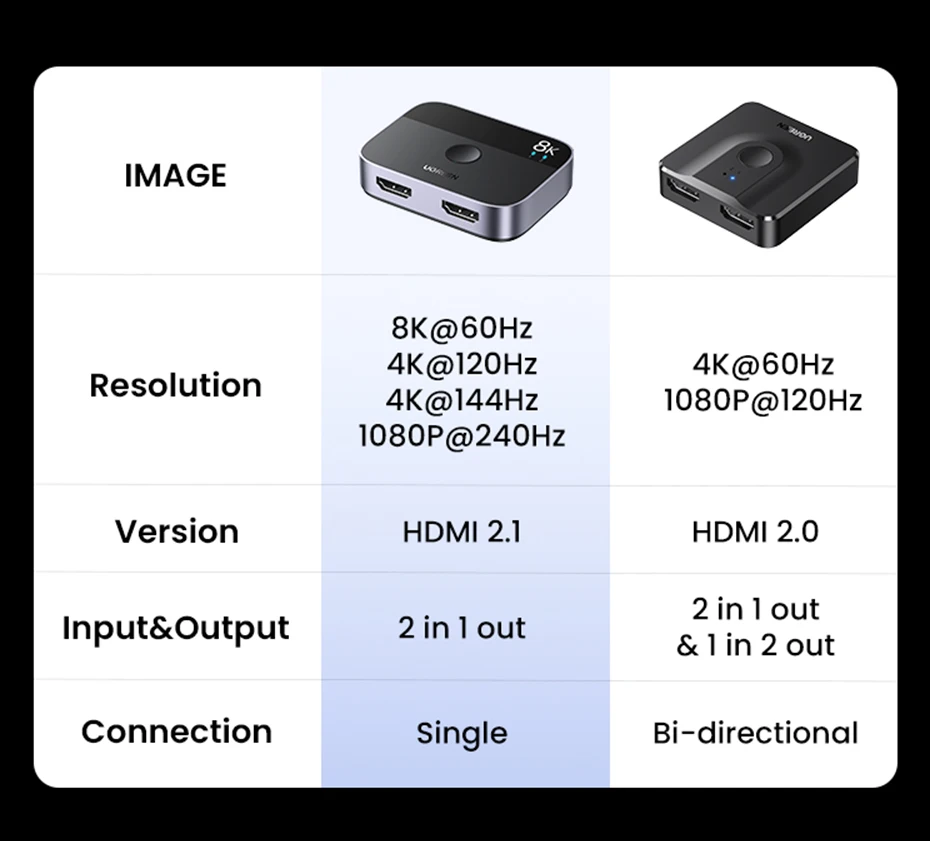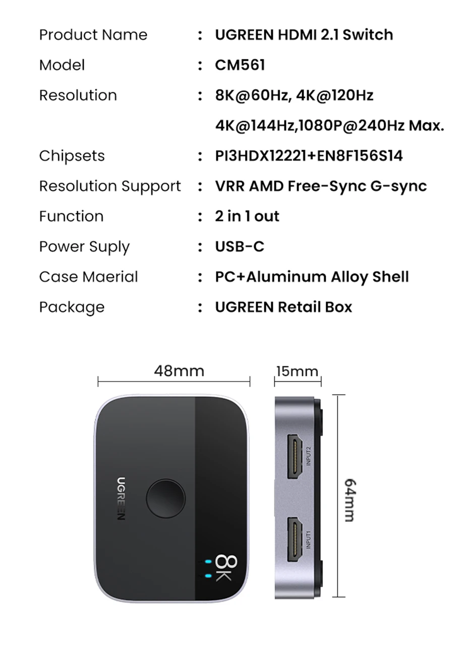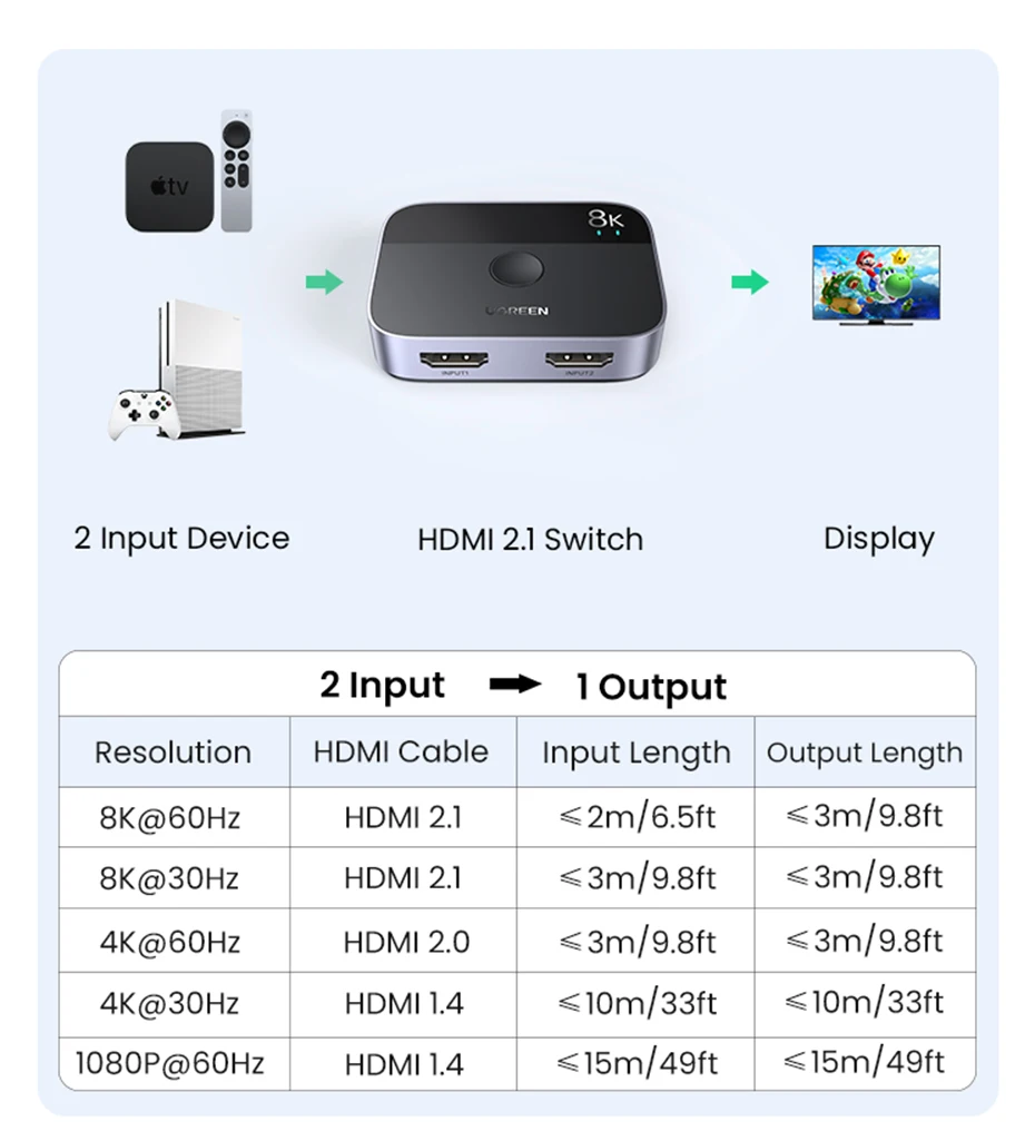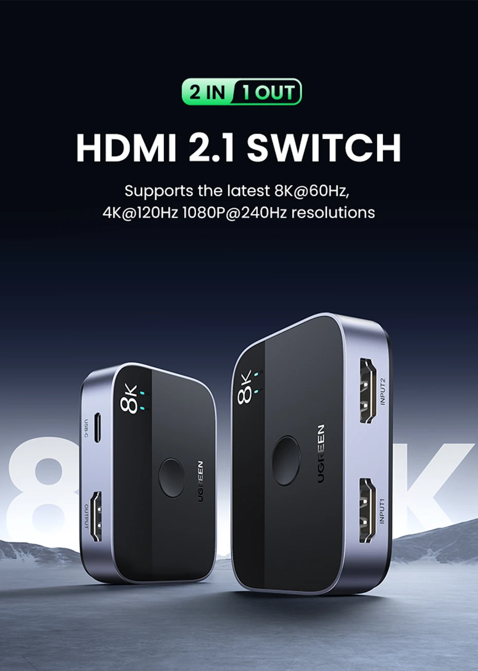UGREEN HDMI 2,1 Разветвитель переключатель 8K 60Hz 4K 120Hz 2 в 1 выход для ТВ Xiaomi Xbox SeriesX PS5HDMI кабель монитор HDMI 2,1