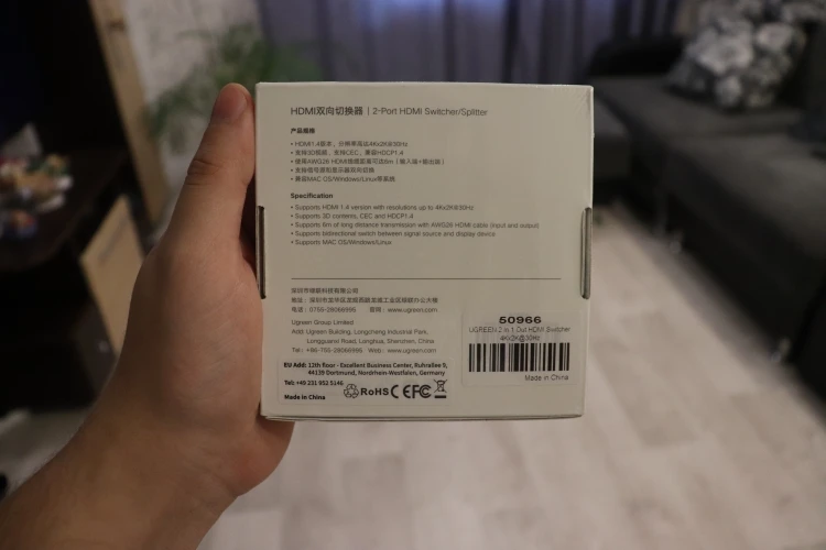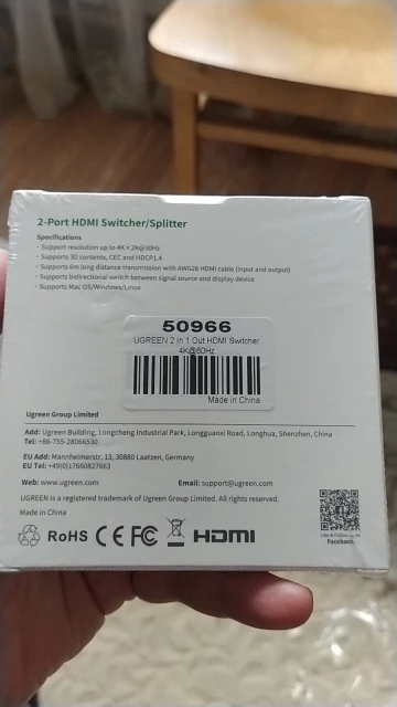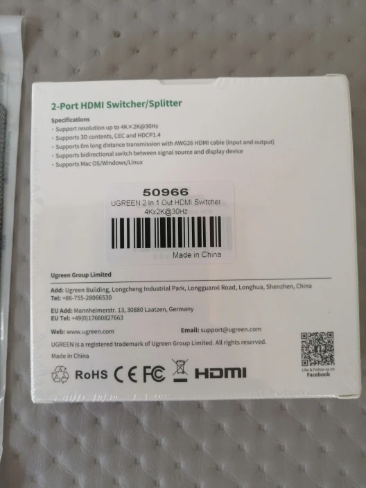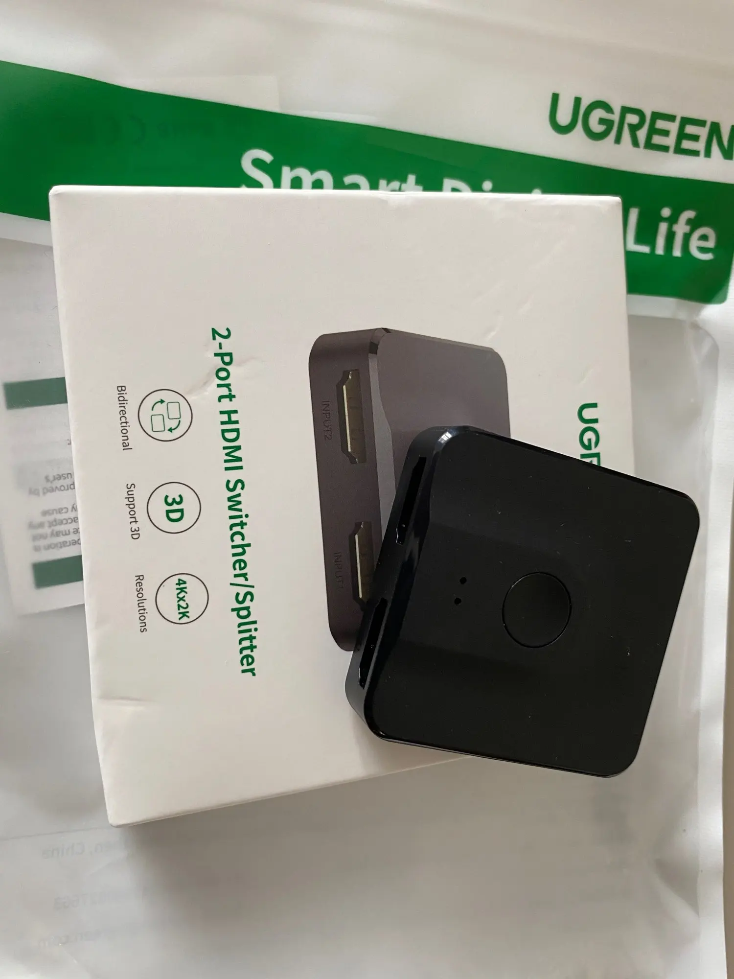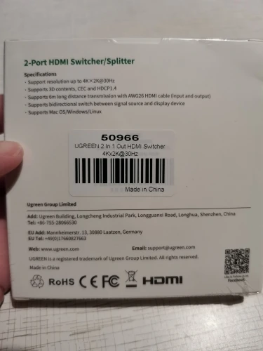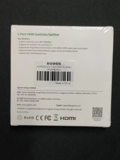 Сплиттер добрался за 14 дней до Волгограда целым и невредимым. Белая коробочка запаяна была в полиэтиленовую пленку и вложена в фирменный пакет компании. Изделие выполнено безукоризненно и оказалось меньше, чем представлял себе по фотографиям. Подключал кабели, переключал их - синие светодиоды фиксировали эти мои телодвижения. По первому впечатлению сплиттер годен и исправно работает. Если вдруг что то не так - дополню отзыв до конца следующей недели (до 20.09.20). Одновременно со сплиттером заказывал кабель HDMI и адаптер microHDMI - HDMI - тоже продукция UGREEN и так же добротно выглядит при полной функциональности. Короче, товар от UGREEN рекомендую, как и данного продавца. Приобретением полностью доволен, специально выбирал товары зарекомендовавшего себя бренда, пусть и чуть дороже - оно того стоит!