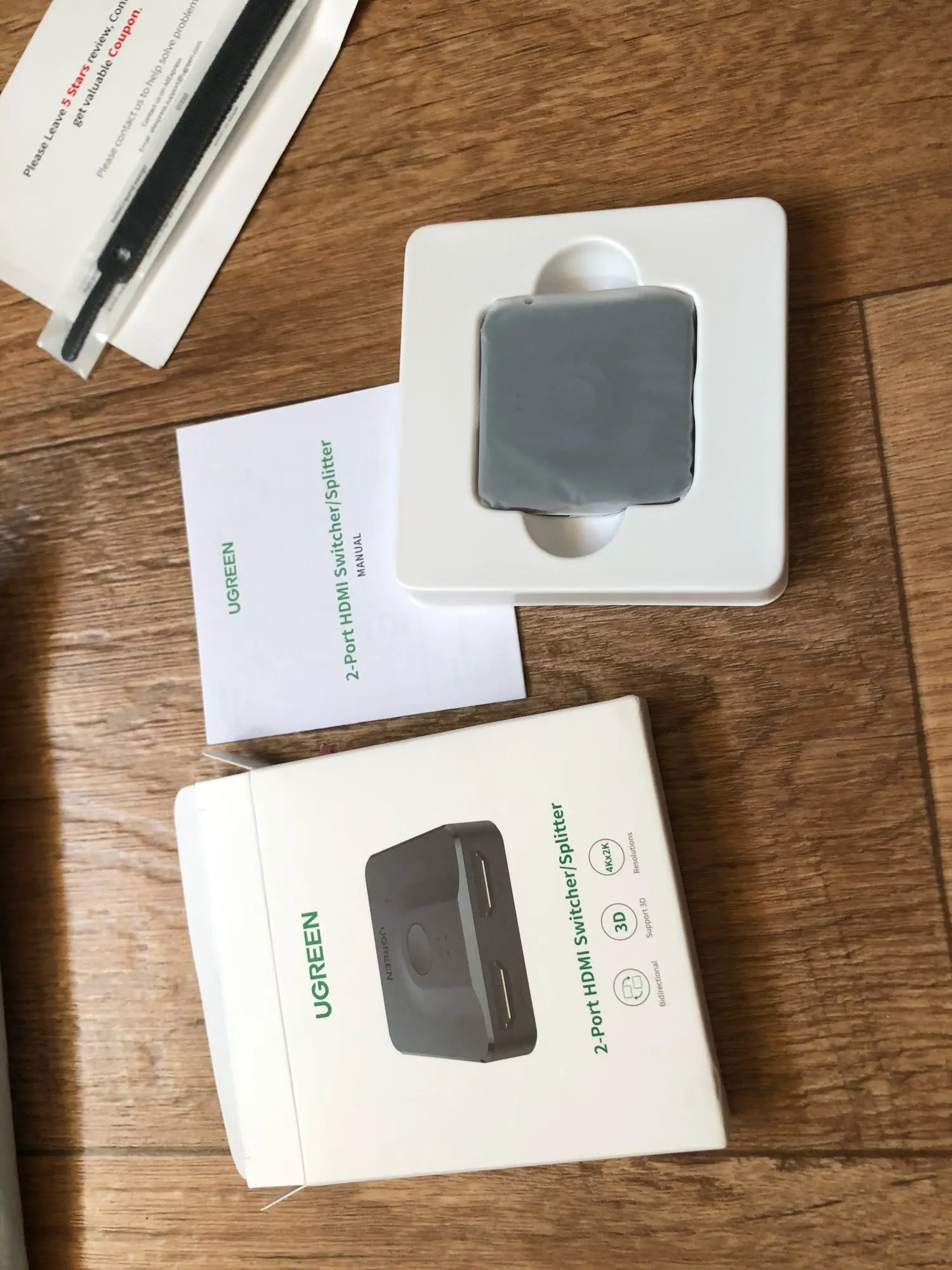 Супер-пупер-мини коробочка наивысшего качества, работает отлично, UGREEN снова и снова оправдывает мои ожидания, быстрая доставка в Тверскую область за 19 дней со дня заказа, спасибо за подарок стяжечку и за товар НАДЛЕЖАЩЕГО качества.