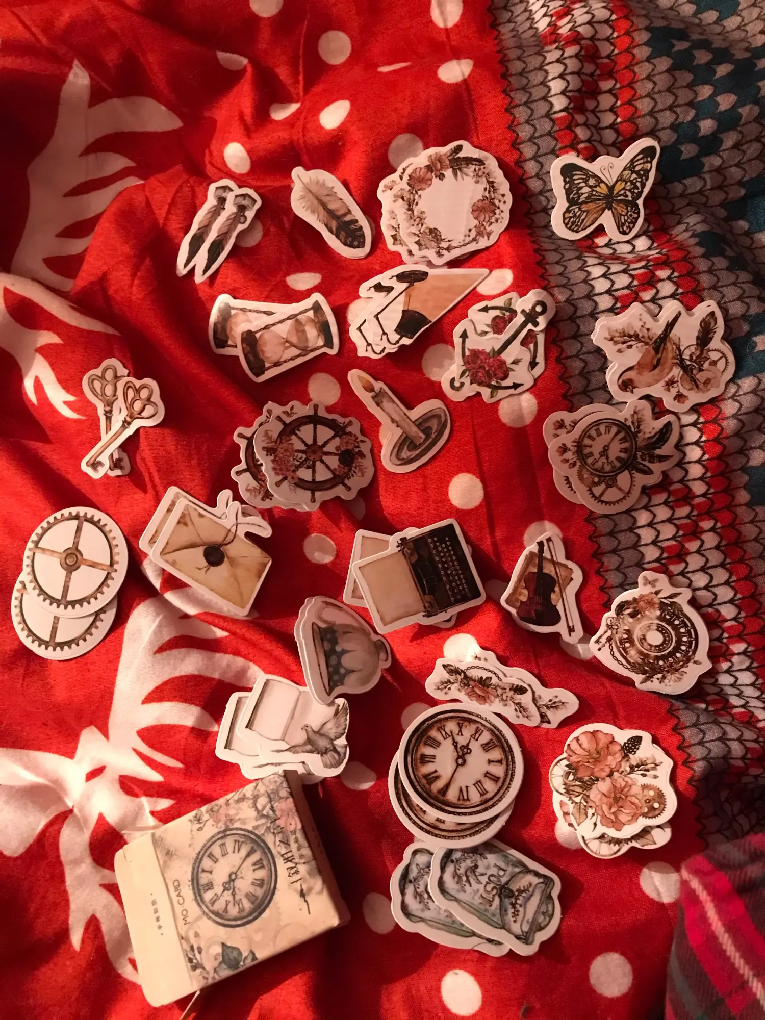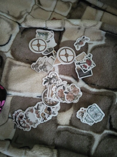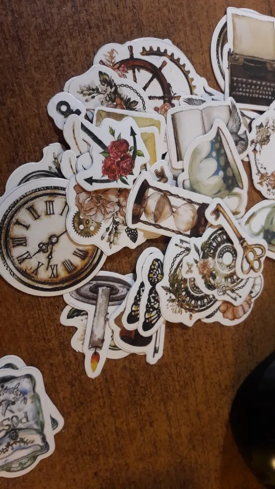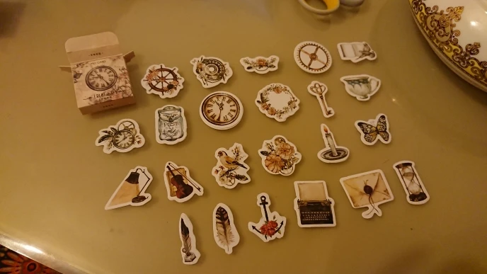Отличные товары, очень красивые винтажные наклейки, размер около 4 см, пришел примерно через месяц. Четкий принт и стоит своих денег. 2 наклейки каждого дизайна. Милый и винтажный