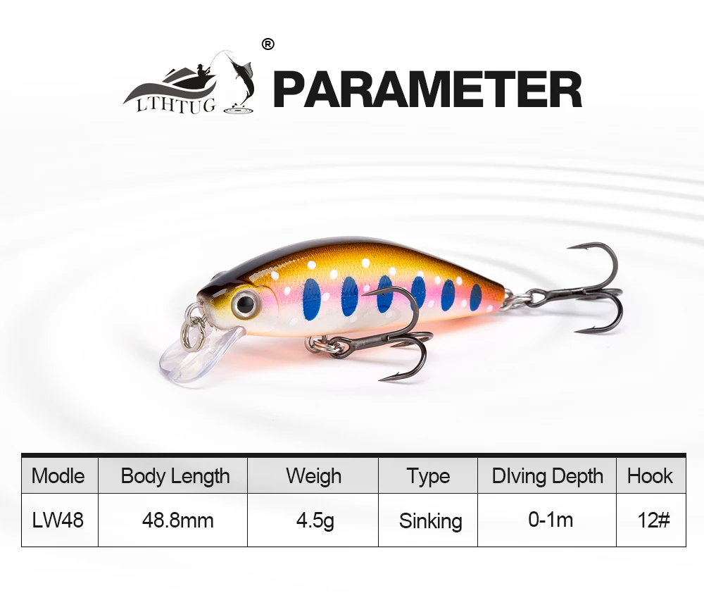 Воблер LTHTUG мелкие рыболовные приманки, 48,8 мм, 4,5 г, 58,8 мм, 8 г, тонущий гольян, жесткая приманка для окуня, щуки, лосося, форели, окуня