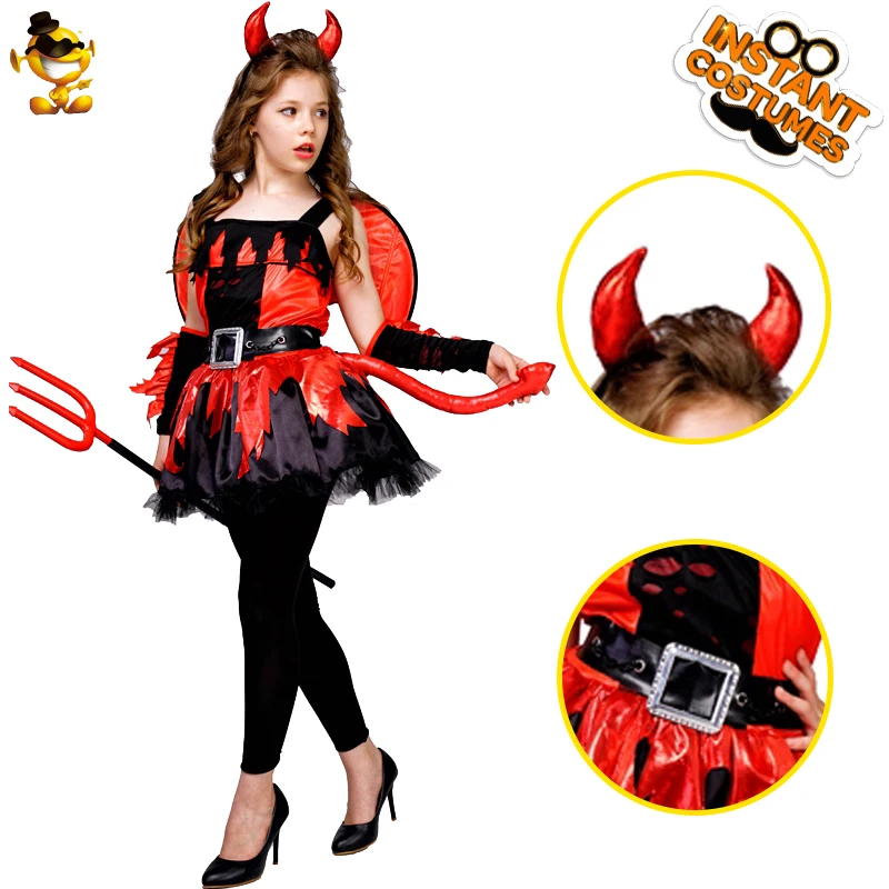 Детские костюмы на Хэллоуин Красный Дьявол для девочек с крыльями Пурим Вечеринка маскарадный костюм косплей костюмы для детей