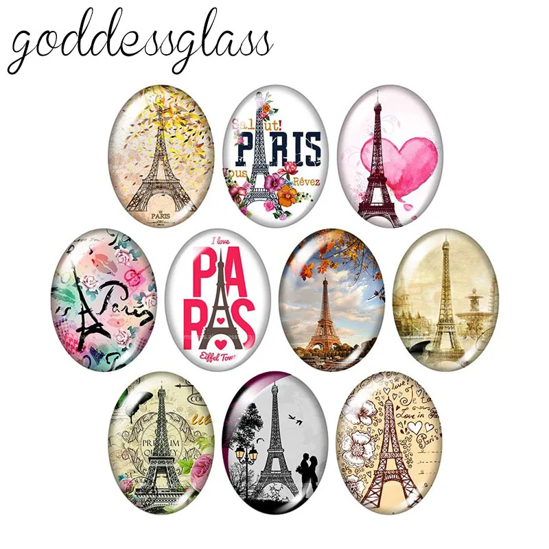 Модные Пары Эйфелева башня декорации 10 шт. 13x1 8 мм18x2 5 мм30x40 мм Овальный фото стекло кабошон демо с плоской задней частью, украшения своими руками, TB0033