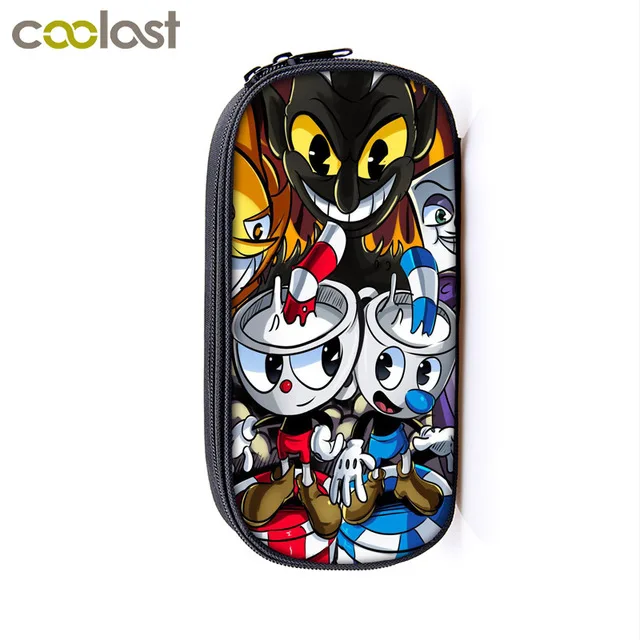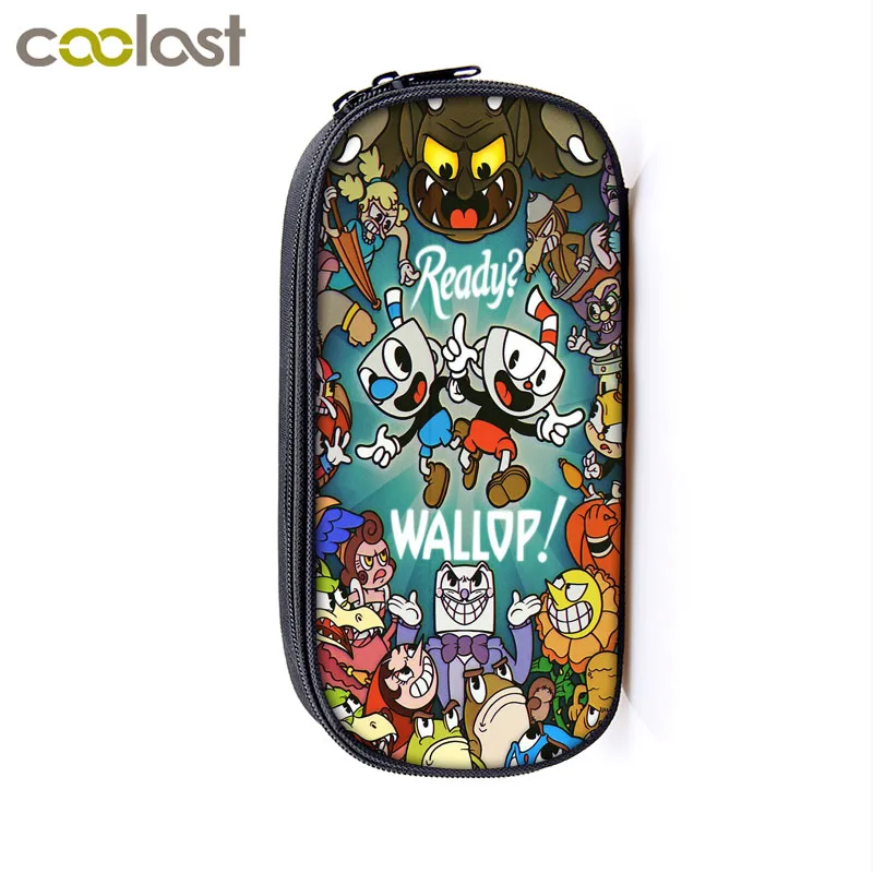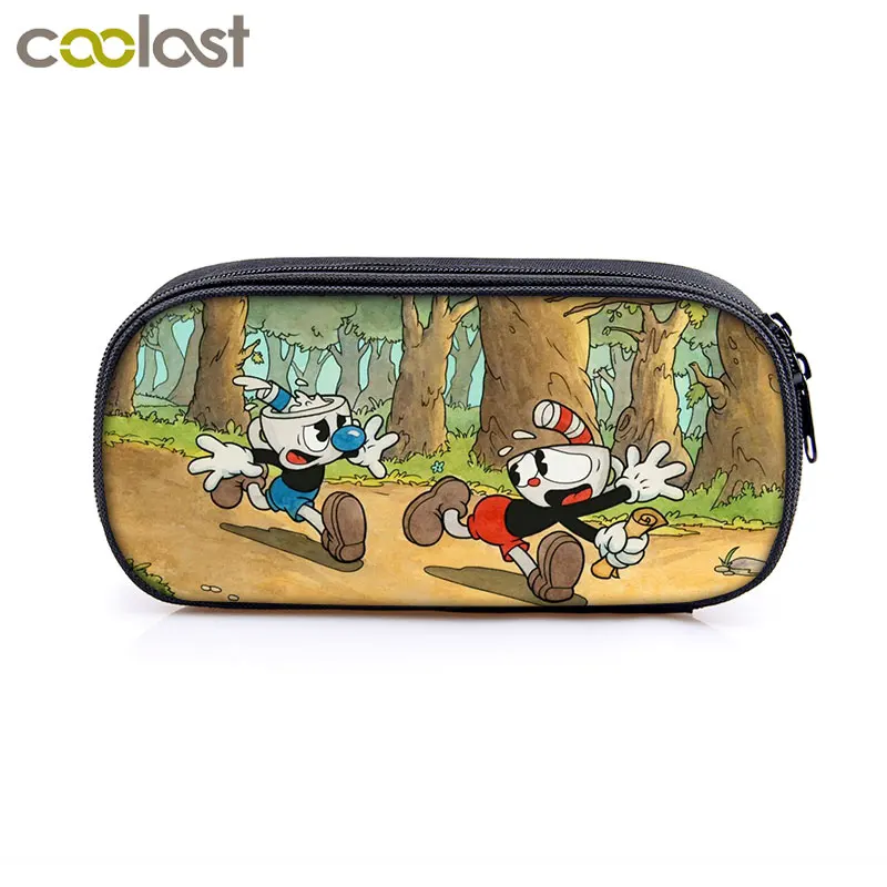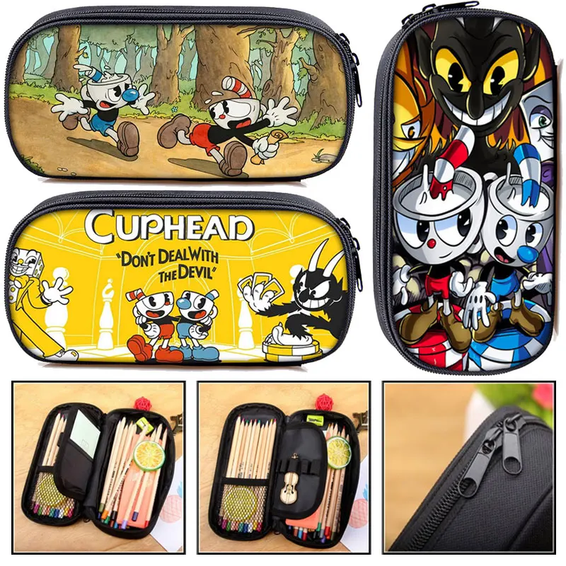 Мультяшный чехол cupheadmughead, косметический чехол с принтом для мальчиков и девочек, сумка для карандашей, школьный чехол, Подростковая сумка для макияжа, детский пенал, подарок