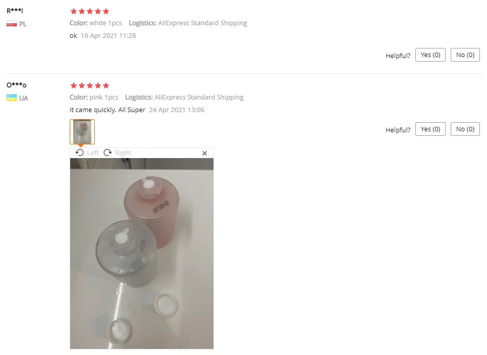 Быстро отправил, быстро получил, небольшие следы от жидкого мыла на стенках. то что на диспенсере колба закруглена внизу, а на этих нет, наводит на некие подозрения.