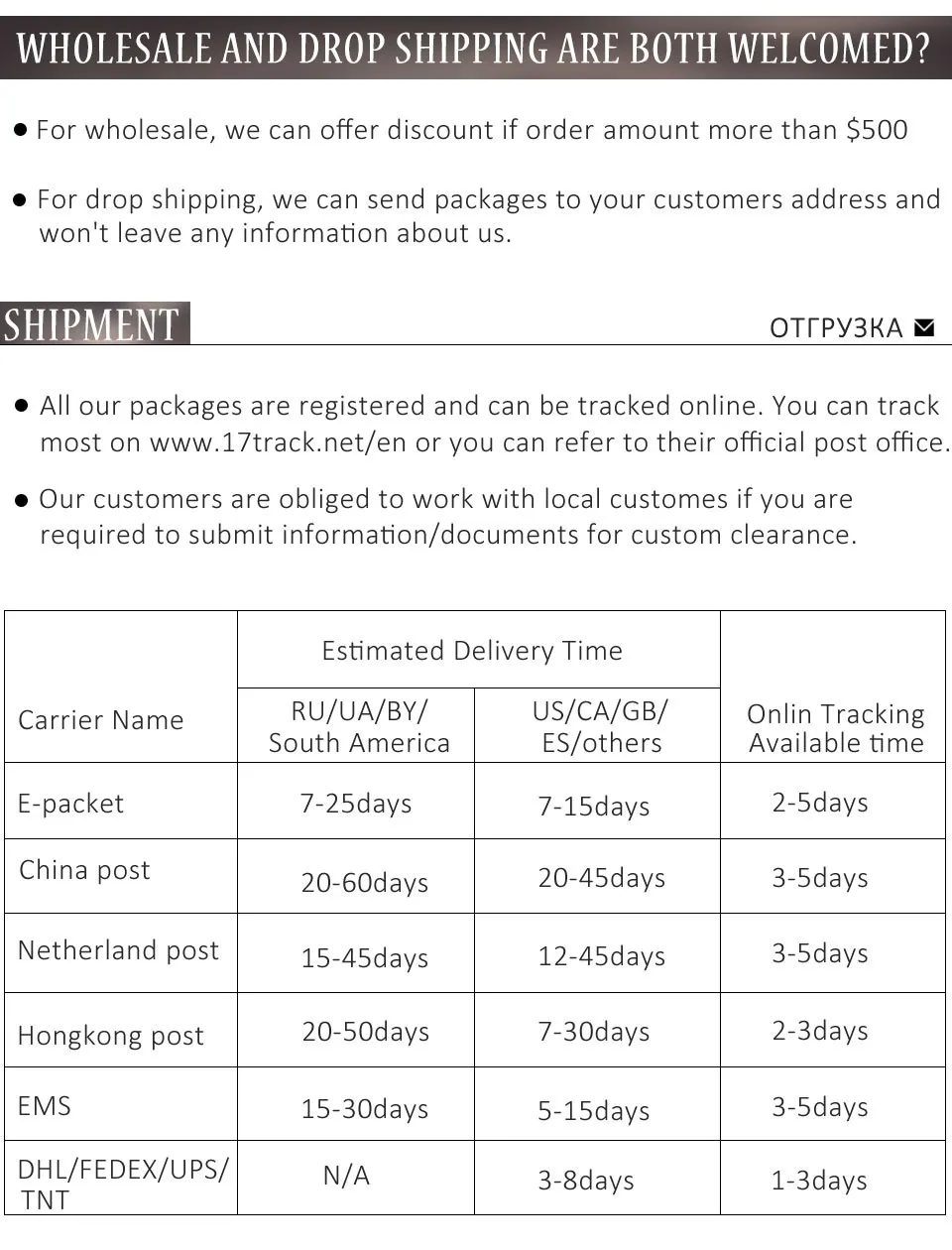 Drop shippingYes