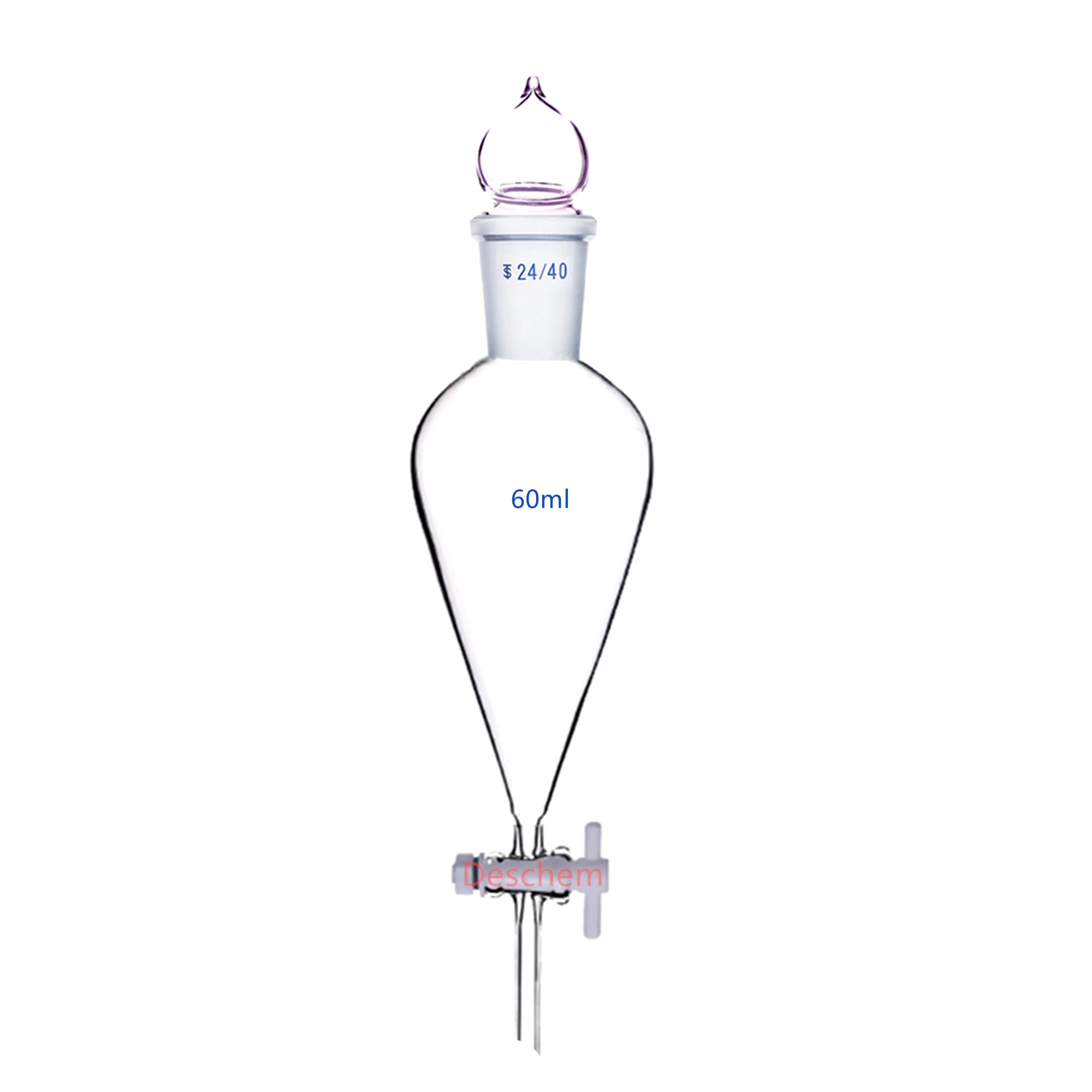 60 мл, 2440, пириформ стеклянная сепарационная воронка, капельная трубка, кран из ПТФЭ