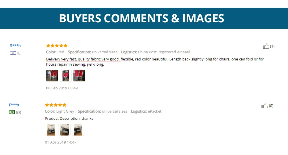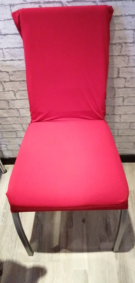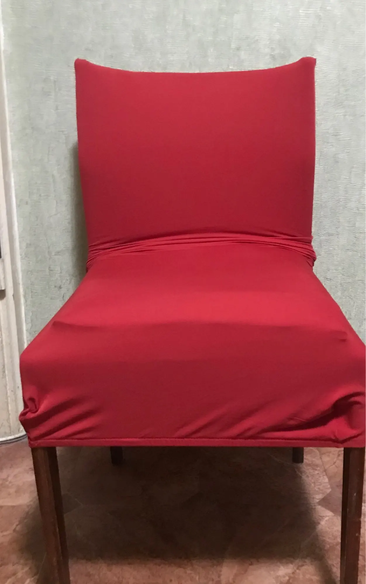 Чехлы пришли быстро,через три недели. Очень красивый цвет- винный. Идеально подошли к стульям, пришлось только заправить острые уголки на спинке внутрь. Материал эластичный, тонкий.
