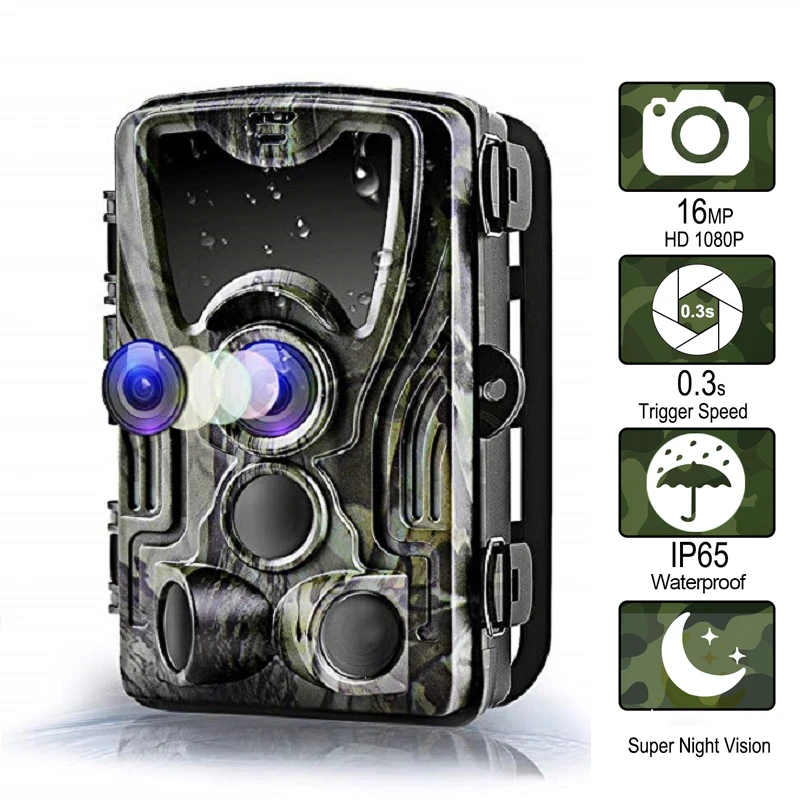 【Full HD 1080P видео и макс. 16 Мп фото 】-Охотничья камера trail захватывает Кристальные изображения 5 мегапикселей и видео full HD 1080P, улучшенный и улучшенный чип делает фотографии более четкими и детализированными в дневное время (черно-белый в ночное время). Поддержка tf-карты до 32 Гб (не входит в комплект).