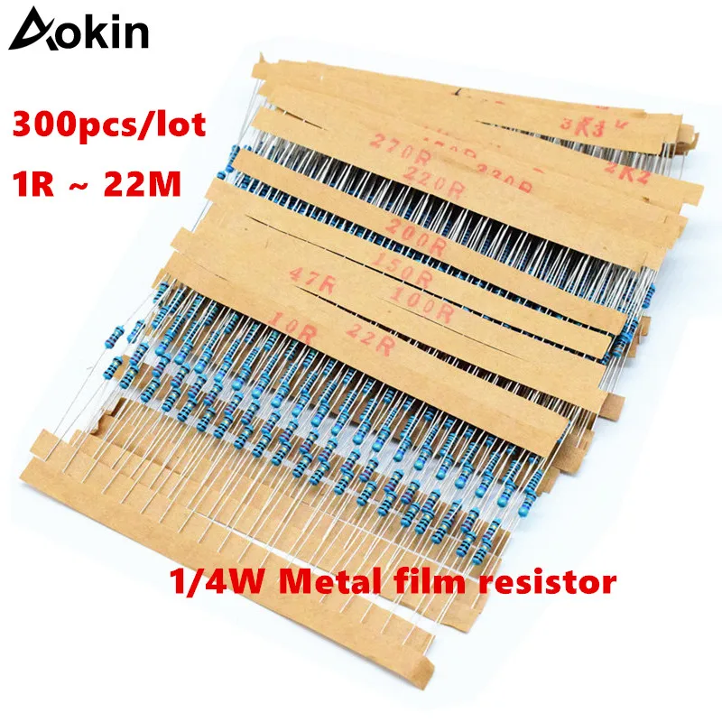 300 шт. 14 Вт металлический пленочный резистор 1R 22M 100R 220R 330R 1K 1,5 K 2,2 K 3,3 K 4,7 K 10K 22K 47K 100K 100 220 330 1K5 2K2 3K3 4K7 ом