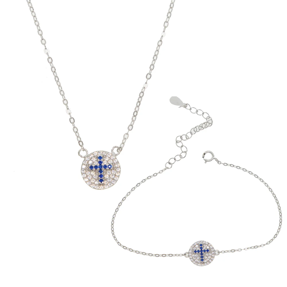 2021 простой крест диск крест браслет ожерелье из стерлингового серебра 925 пробы ювелирные изделия круглый синий крест AAA Cz проложили ювелирные наборы