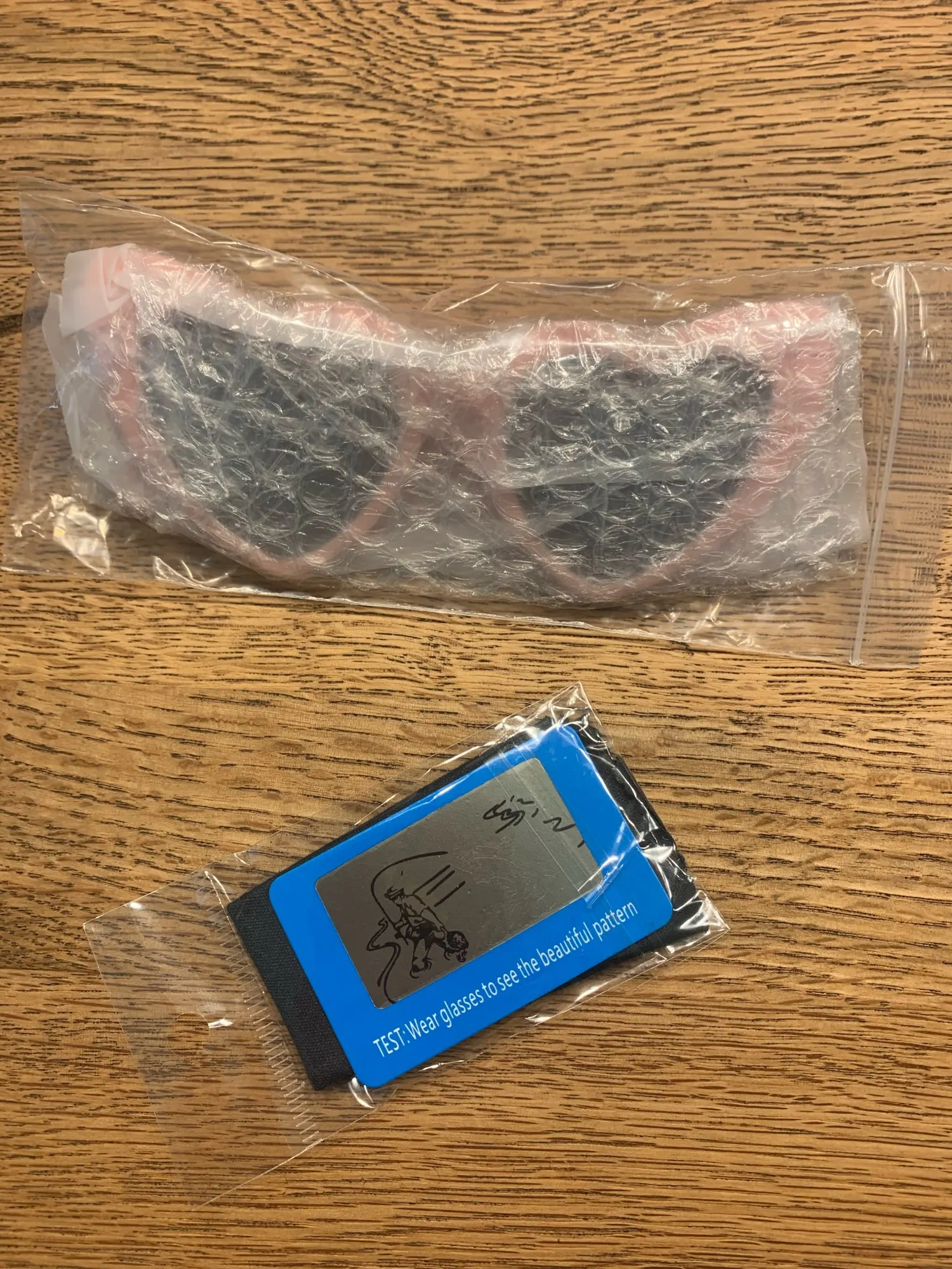 Понравились! Выглядят прилично)) Дошли целые, упакованные. Дочка ещё маленькая для них, ей 1,5.( просто снимает их пока) Чуть позже будем носить. Прикольные)) к ним идёт картинка продолжение которой видно только в очках и салфетка. Однозначно рекомендую!