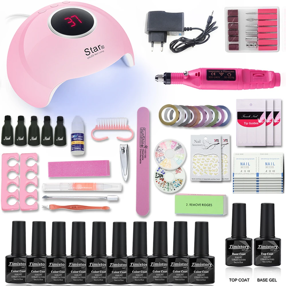 Маникюрных наборов 10 цветов Гель-лак для ногтей, лак для ногтей маникюрный набор с 80/54/36 Вт Светодиодная УФ-лампа, Электрический Фрезер для ногтей, сверлильный станок Инструменты для маникюра