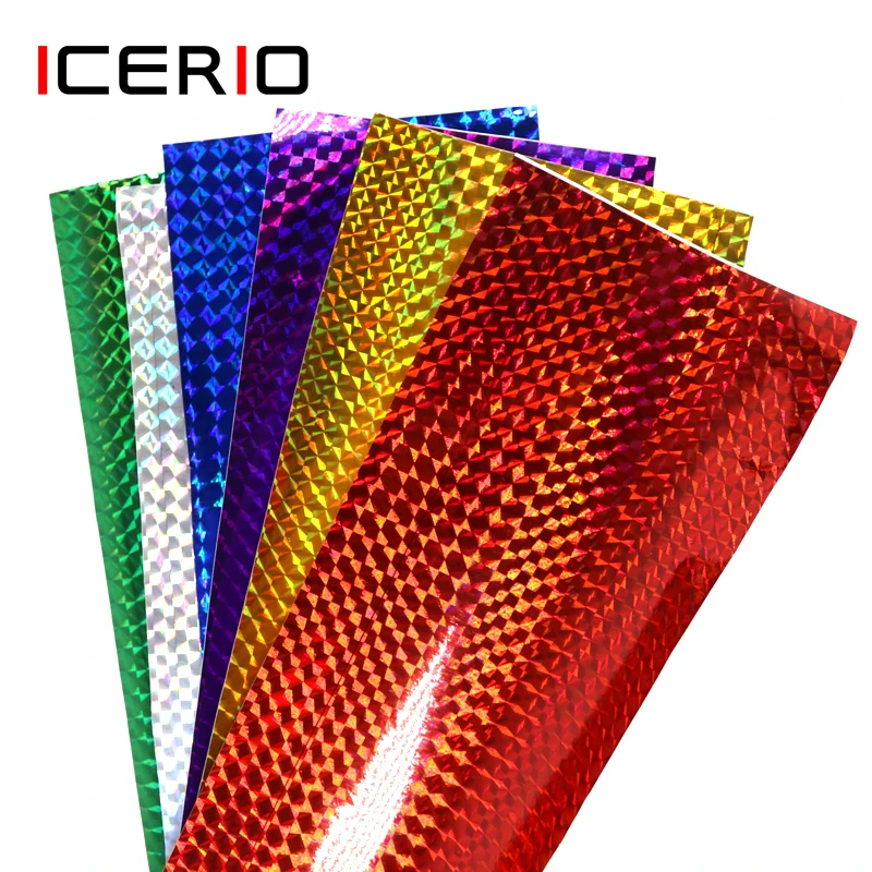 ICERIO, 6 шт., 10 х20 см, Голографическая клейкая пленка, лента для изготовления приманок, материал для вязания мушек, металлические жесткие приманки, цветные наклейки для мух