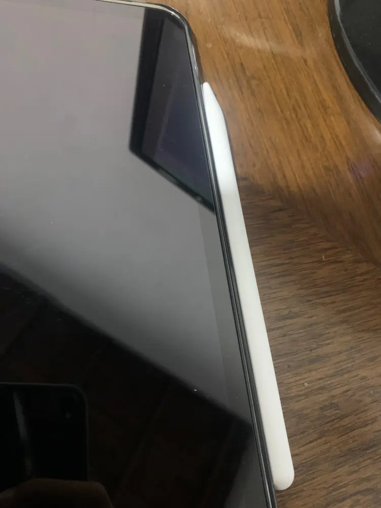 Относительно легко проведите крышку поверх карандаша Apple, но немного трудно снять. Карандаш все еще может магнитно прилипать к iPad, но не заряжать.
