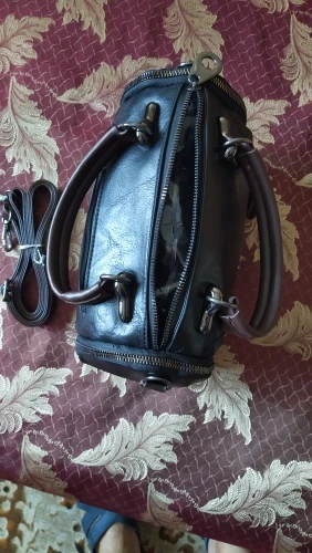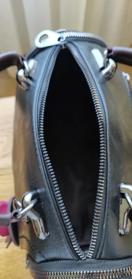Сумка дошла за две недели до Рязани, описание точное, посылка упакована качественно, внутри был надутый мешок, сумка форму сохранила. Выглядит очень стильно. Внутри один карман без молнии. Молнии рабочие. Не очень удобно добираться за мелочами в основной отсек (это из-за формы сумки), но ради нестандартной формы можно потерпеть. Если же удобство и функциональность сверхпринципиальны, то тогда откажитесь от покупки. Меня сумка устраивает,брала ее только из-за формы. Естественно, не кожа.
