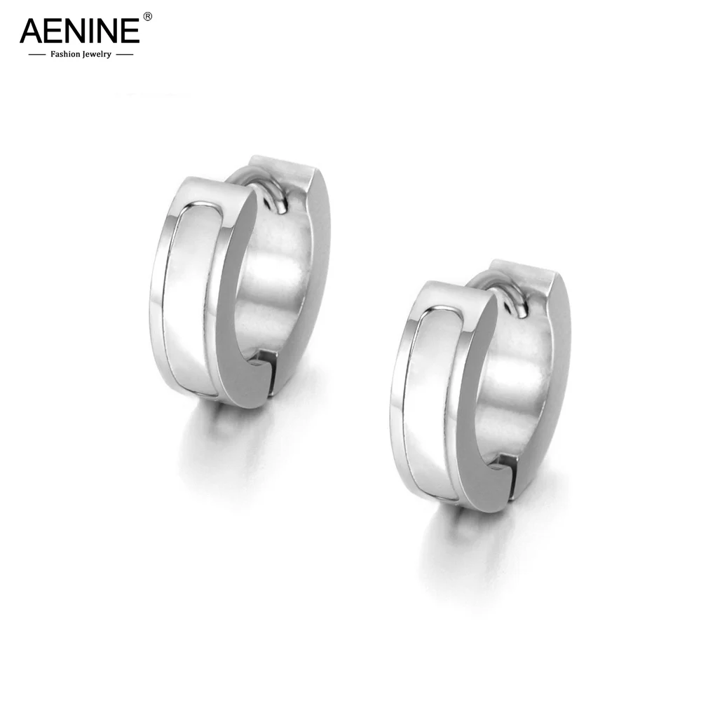 Женские серьги-кольца AENINE, из нержавеющей стали, розовое золото, с черно-белыми ракушками, AE18038
