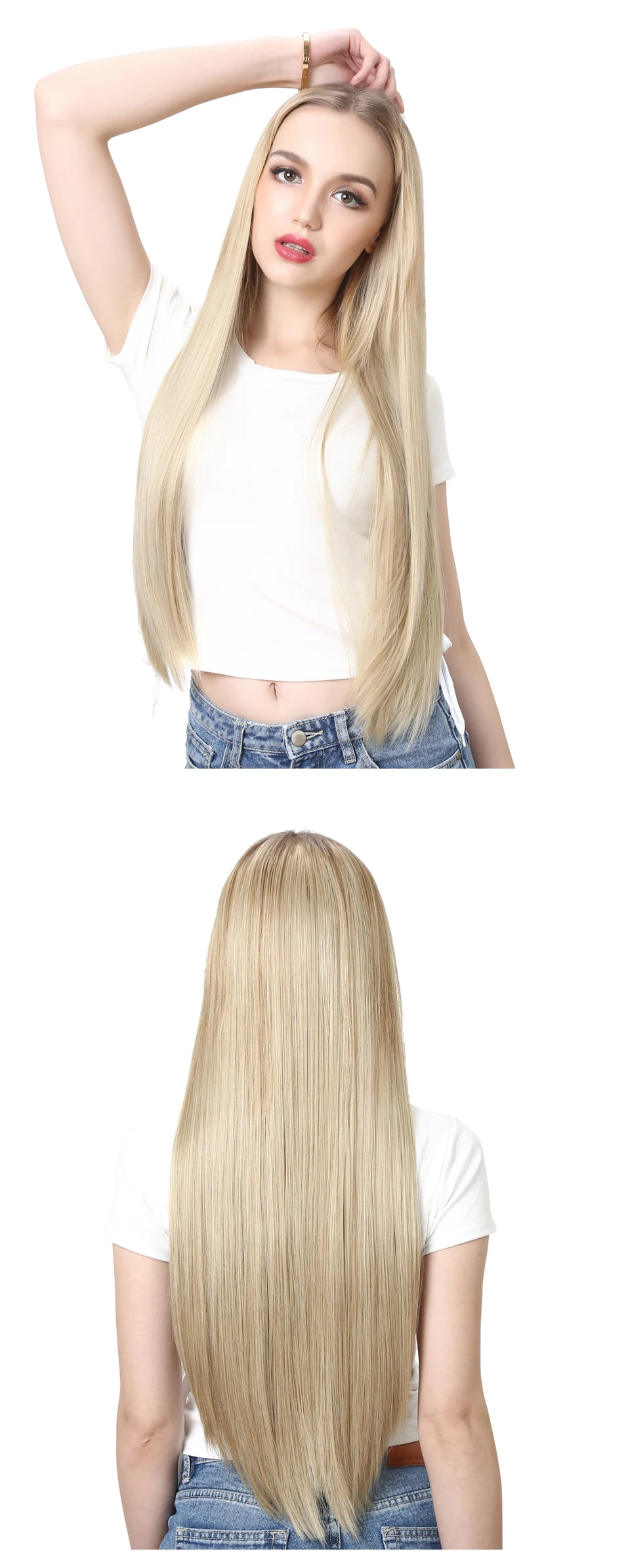 U-образный полупарик блонд Омбре, длинные прямые головы, дешевые си...
