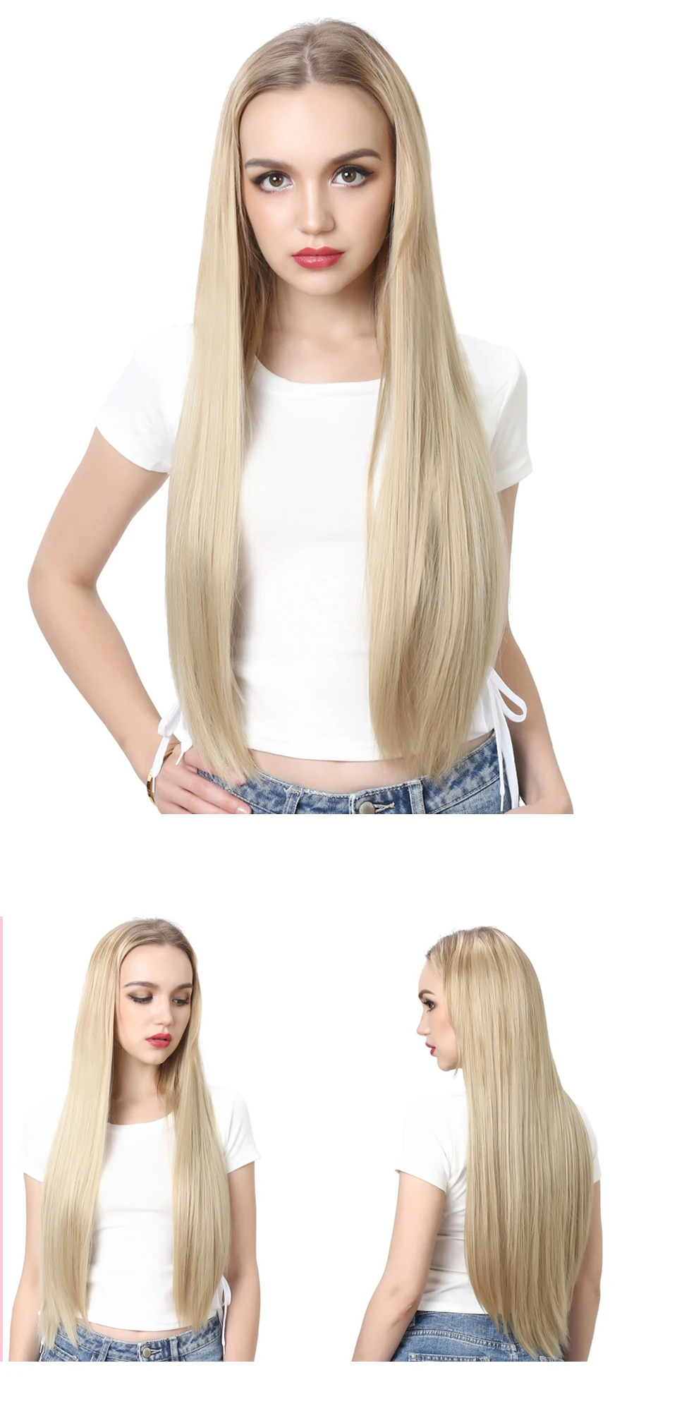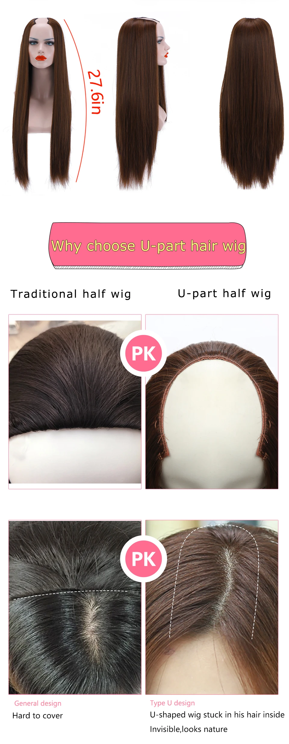Синтетический полупарик с зажимом в U-образной части 34 длинные прямые густые волосы длиной 28 дюймов натуральный шиньон для женщин черный коричневый 02