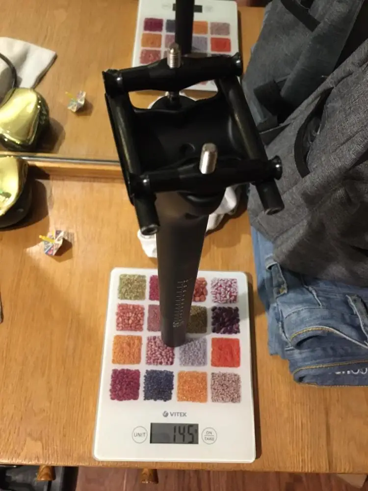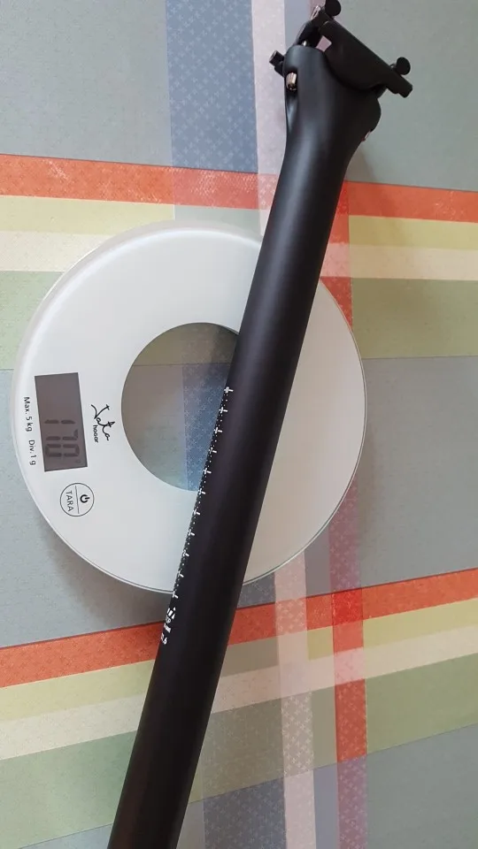 Показания весов немного наклонены. Хороший и легкий Подседельный штырь. Протестированная версия 27,2x400 с весом 95 ky. Отлично работает, хороший гибкий.