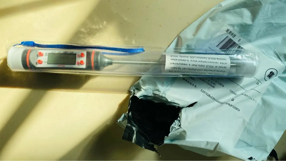 Упаковка прибыла в идеальном состоянии, термометр покрыт пластиковым цилиндром, чтобы он не был поврежден. Товар поставляется без стека, поэтому я все еще не могу сказать больше об этом, потому что я не могу это подтвердить. Он прибыл в Испанию около 3 недель.
