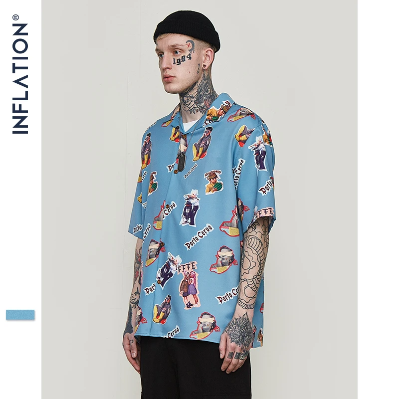 Мужская гавайская рубашка INFLATION, Повседневная пляжная рубашка с забавным принтом и коротким рукавом, летняя одежда свободного кроя для мужчин 2020 S, 9220