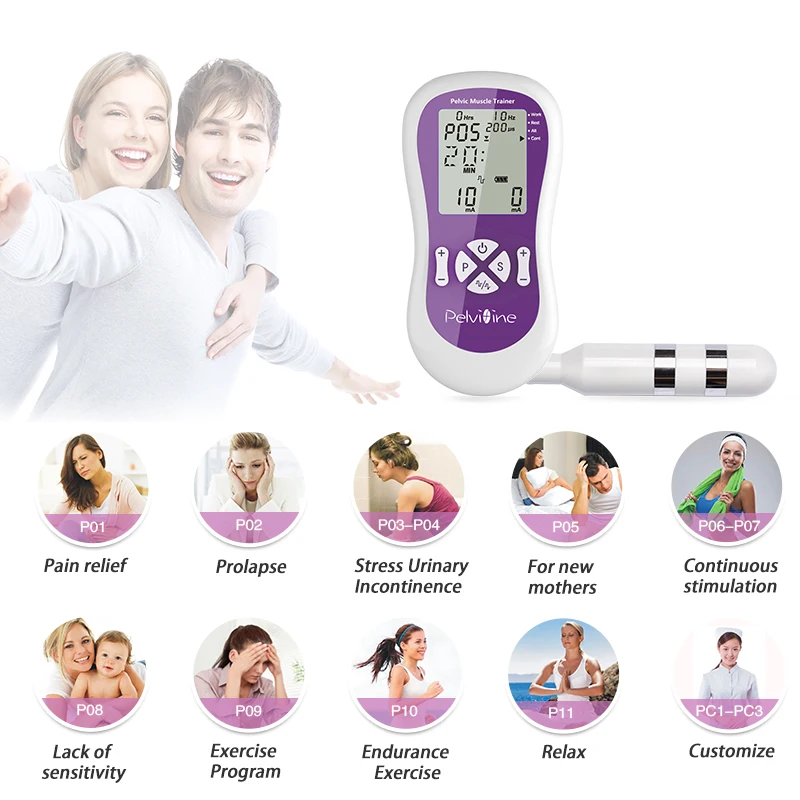 11 программ P01 облегчение боли P02 призываем/пролапс P03 стресс 1 P04 стресс 2 P05 частота/призываем 1/новых матерей P06 частота/призываем 2 P07 частота/призываем 3 P08 отсутствие чувствительности PP09 тазового дна работать P10 выносливость P11 отдыха мышц тазового