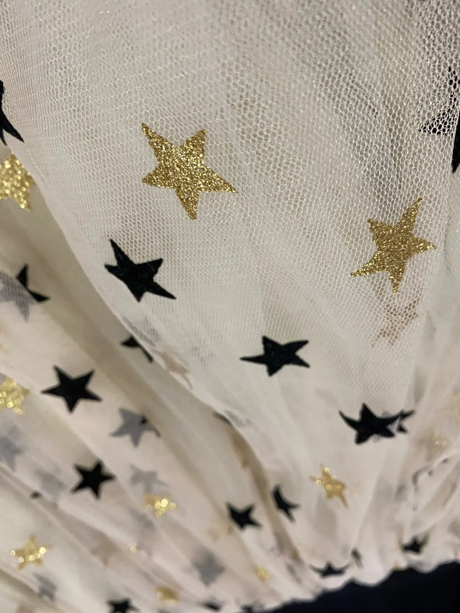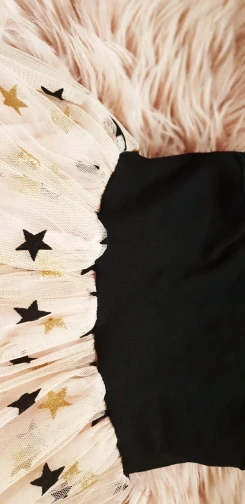 Красивое платье. Множество ковкого материала, поэтому более длинное. Черная звезда на фатиновой выпуклой и очень милой, очень нравится мой выбор.