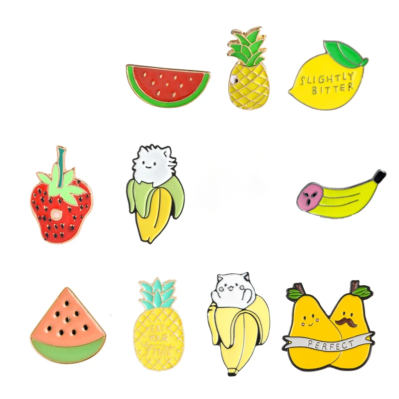 Эмалированные заколки в виде кота, банана, мультяшных животных, фру...