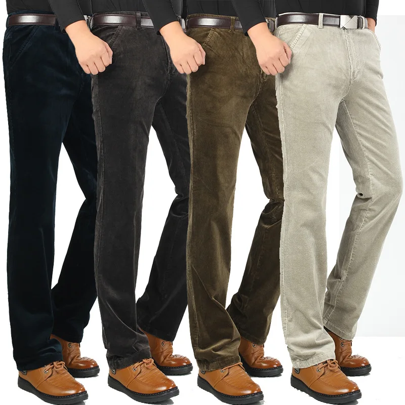 Брюки мужские вельветовые, прямые, с высокой талией, для осени и зимы
