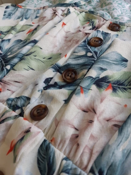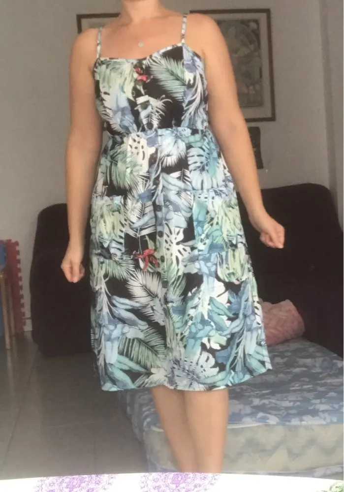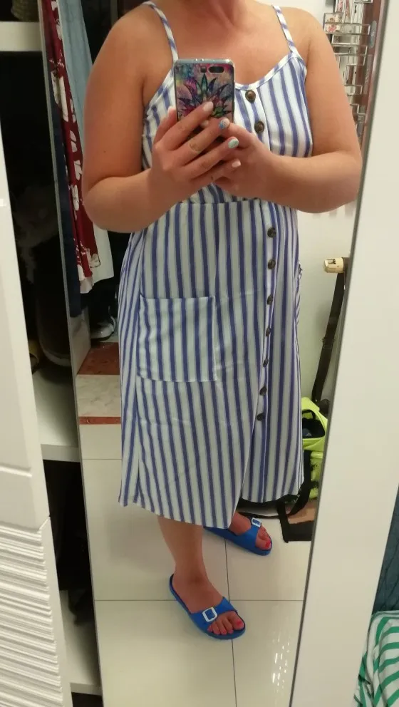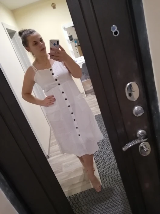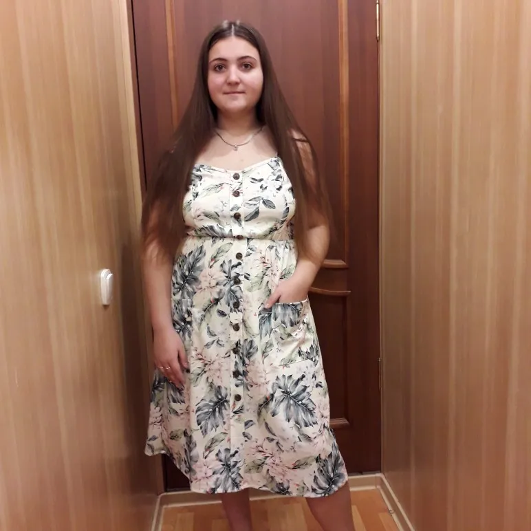 Смешанные чувства от платья. С одной стороны- как на фото. С другой- не то, что я ожидала получить. Покупала 2 точно таких же (по фото) платья в других цветах у другого продавца, соответственно ожидала, что получу аналогичный продукт. Увы. Сильно удешевленная подделка (хотя цена примерно такая же). Вся передняя планка с пуговицами- имитация, ничего не расстёгивается. Лямки не регулируются. Ткань- чистая и рыхлая синтетика.Сплошное разочарование на фоне раннее заказанных платьев (которые были из хлопка, с полностью расстегивающимся фронтом и регулируемыми лямками. В общем, девочки, при выборе смотрите не только на фото, но и читайте внимательно отзывы. Не всё, что выглядит 100% аналогом, таковым является. Если решите всё-таки покупать здесь, берите свой размер или (если не уверены), то меньший, т.к. ткань сильно тянется.
