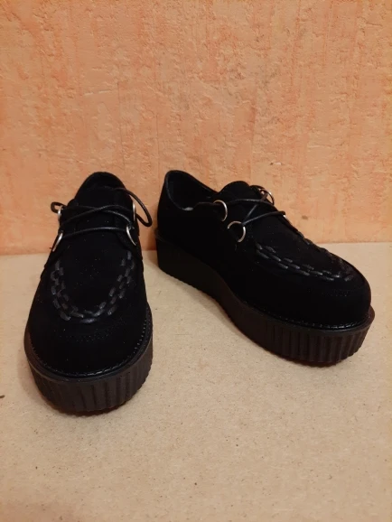 Хорошие, за свою цену, замшевые немного маломерят в отличие от тех, что из кожзама. Небольшой бугор на одном ботинке(под замшевым слоем, левый ботинок), но не критично. Из кожзама - немного морщинистые на подъёме и под шнурками. На замшевых тоненькие шнурки, на тех, что из кожзама - другие, толстоватые немного. Сильной вони нет) Упакованы были в пакет, в целом - норм!