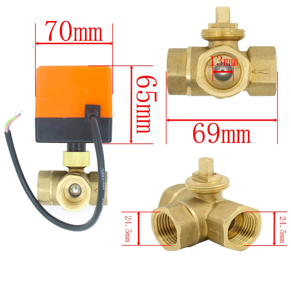 Латунный шаровой клапан с электроприводом, 34 дюйма, AC220v, DC24v, 12 В постоянного тока, 3-ходовой, dn20, водопроводный вентиль, CN01, CN02
