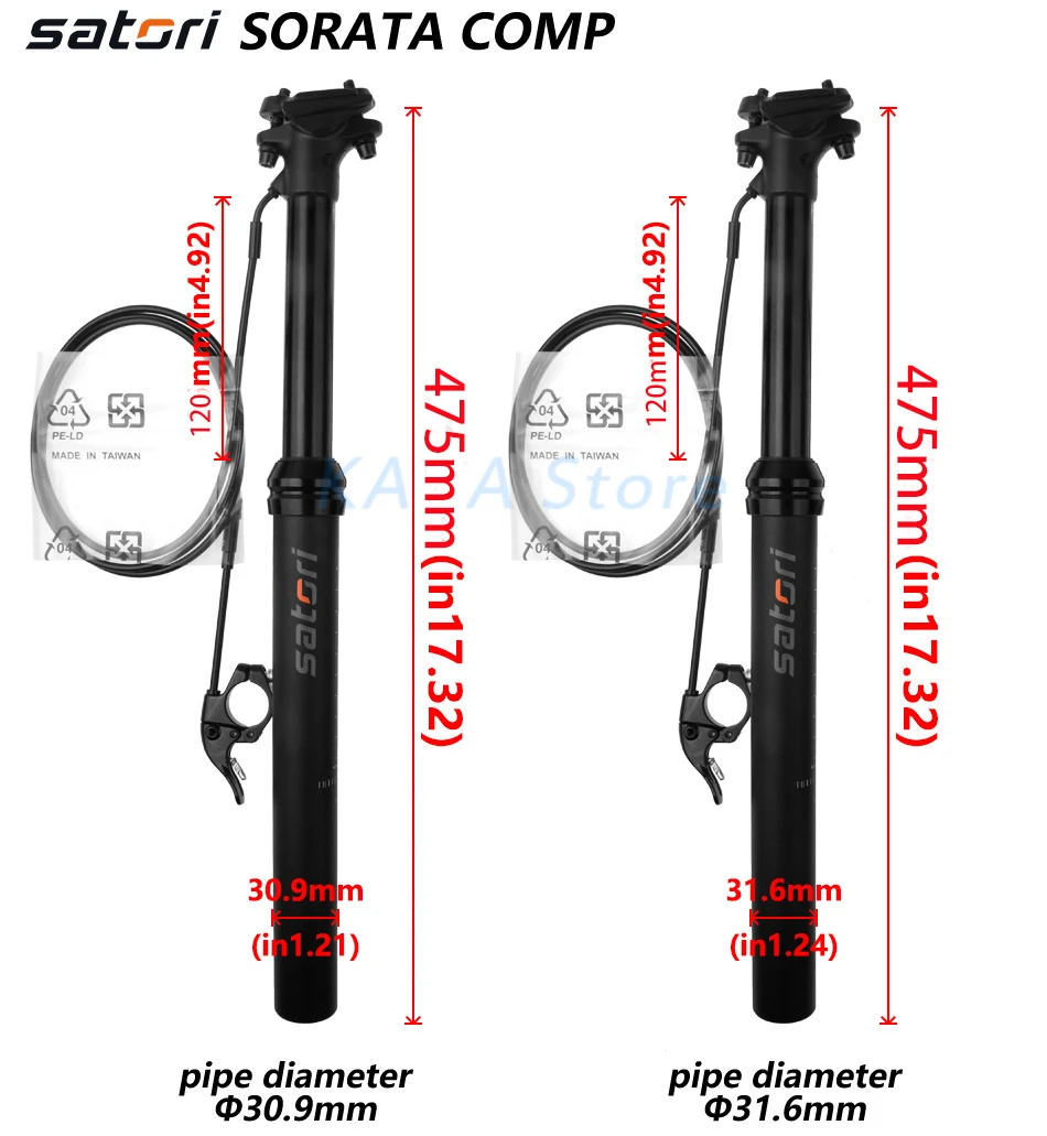 Регулируемый штырь для сиденья велосипеда Satori, для комфортного седла, 120 мм, 30,9 мм, 31,6 мм, с дистанционным управлением