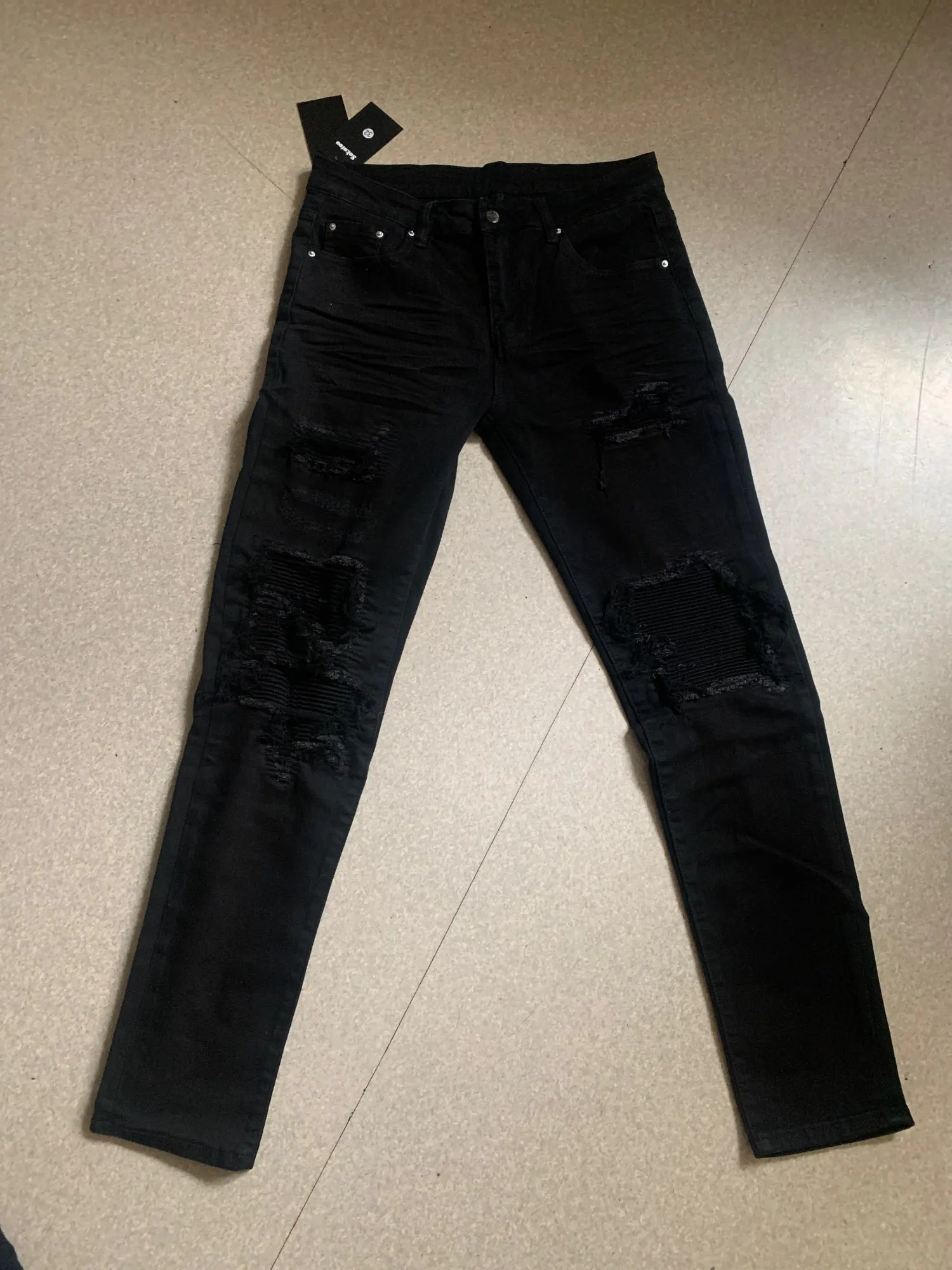 Мужские лоскутные джинсы Sokotoo стрейчевые зауженные байкерские джинсы черные рваные брюки-карандаш