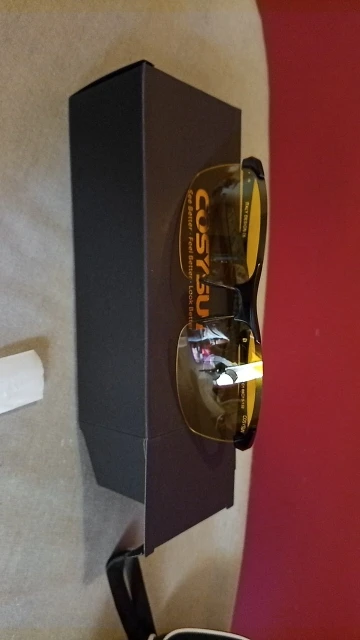 Отличные очки! Днем в очках светлее, а в темное время, с желтым оттенком. Глаза не устают! Очень порадовала упаковка! Красивая коробка! В ней пластиковый футляр! В футляре очки, тряпочка для чистки стекол и мешочек для очков! Спасибо, продавцу! 5 Звезд!!! Рекомендую!!!