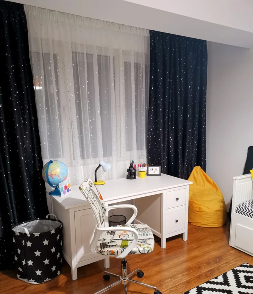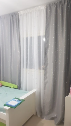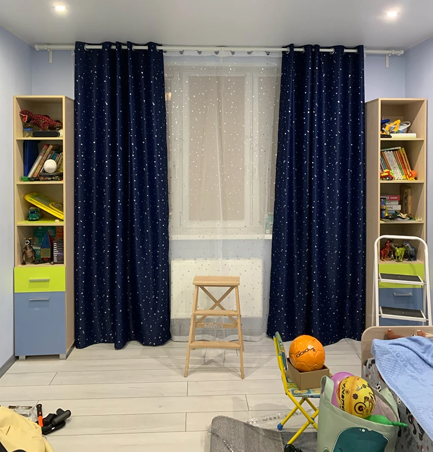 Шторы качественно сшиты, швы ровные, материал приятный на ощупь. После стирки в стиральной машине звездочки никуда не делись,все на месте. Мне очень понравились, когда повешаю дополню отзыв