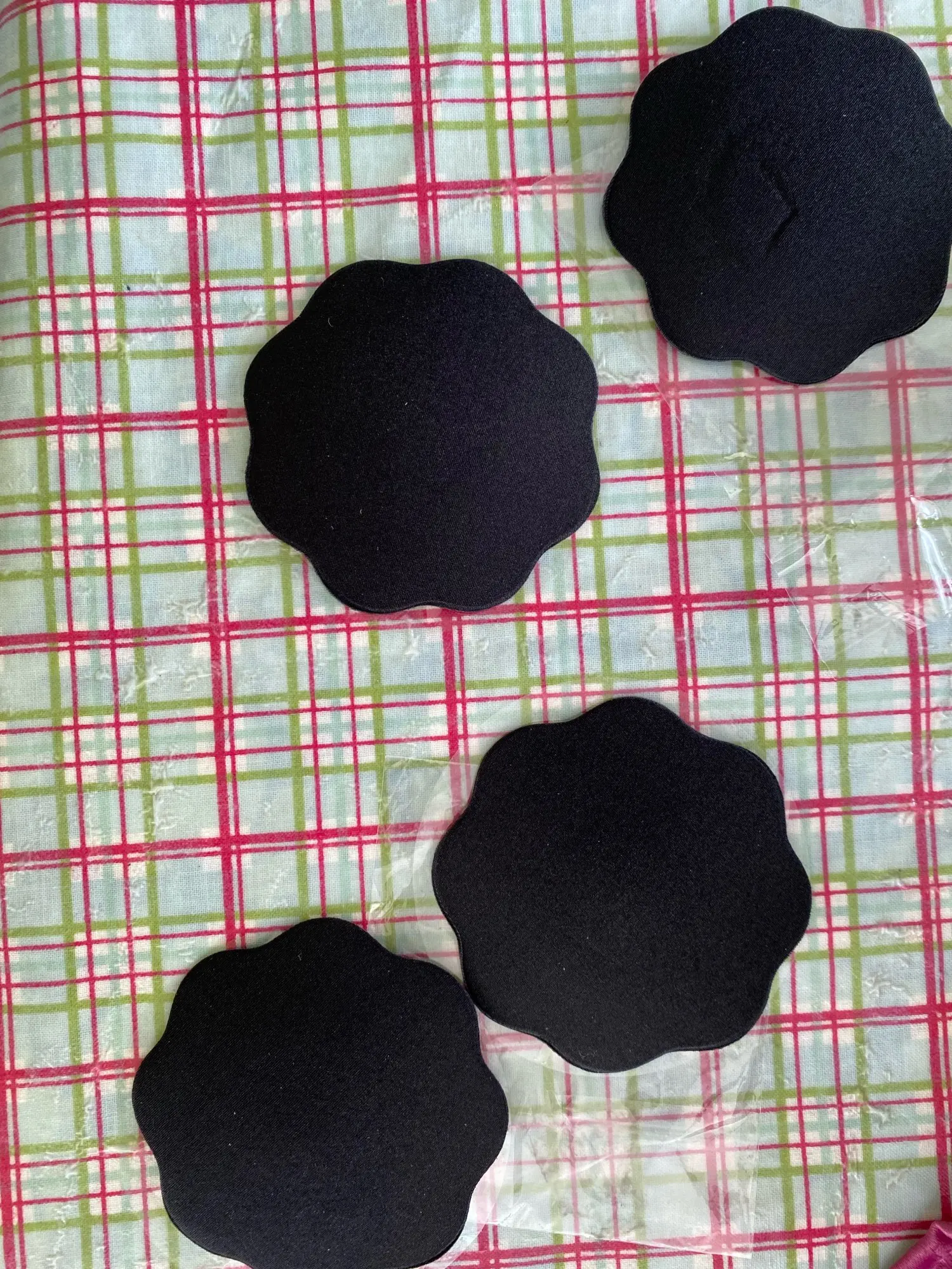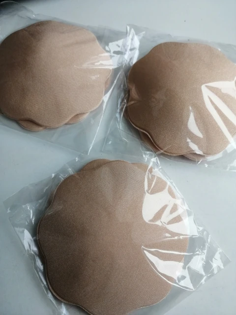Соски больше, чем размер рук. Они сделаны из той же ткани, что и некоторые бюстгальтеры. Я полагаю, что максимальное использование, которое вы можете дать, составляет 40 применений; Тогда они больше не прилипают в соответствии с бюстгальтером с наклейками, которые я купил.