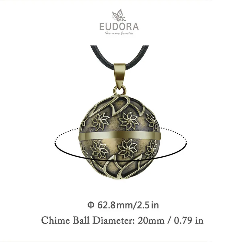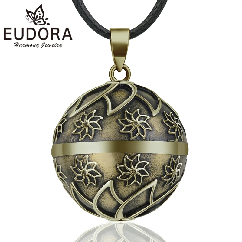 Винтажное бронзовое ожерелье EUDORA в виде шара гармонии с цветами Подвеска в виде колокольчика для женщин модные ювелирные изделия мексиканский шарик для беременности B342