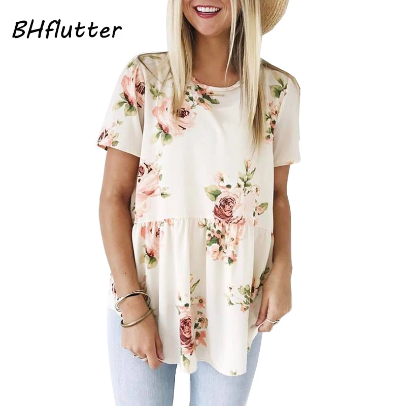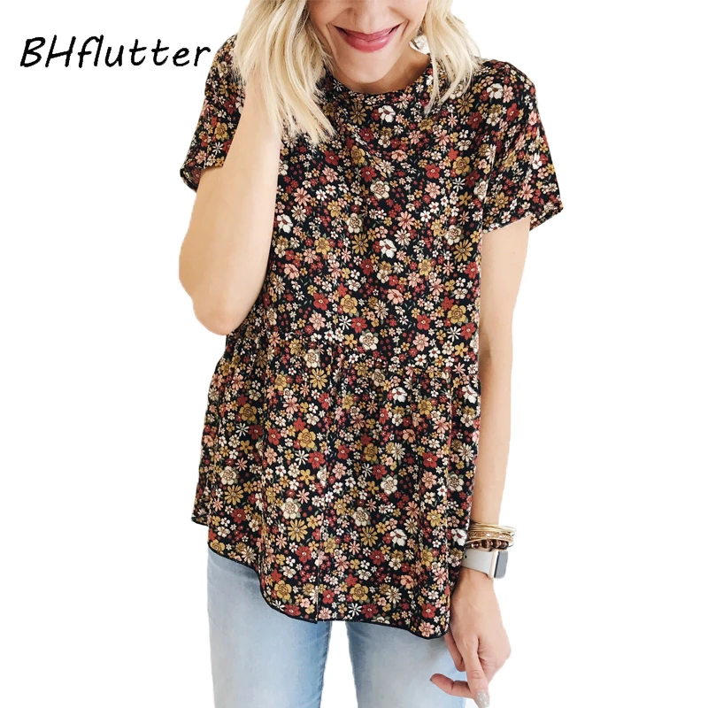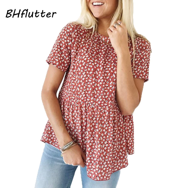 Блузка BHflutter женская с коротким рукавом, Повседневная рубашка-кимоно с цветочным принтом, уличная одежда, лето 2019