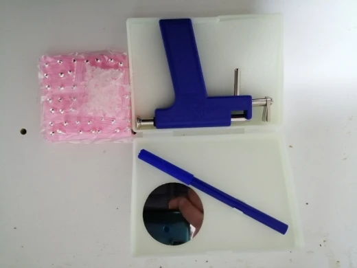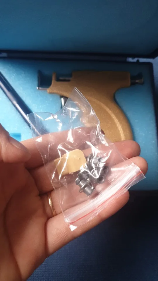 Маленький и очень практичный. Иногда серьги прикрепляются к пистолету, но по цене он выполняет свою функцию. Просто используйте в мочке уха, не используйте в хрящах, потому что это может быть очень агрессивно и может сломаться. Поставляется с силиконовой задней гайкой