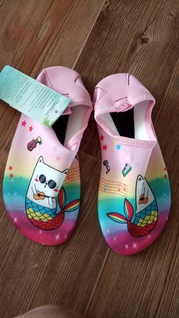 mooie kleuren, onderkant is stevig. wel nog veel te groot voor mijn dochter met Europese maat 21. snelle levering