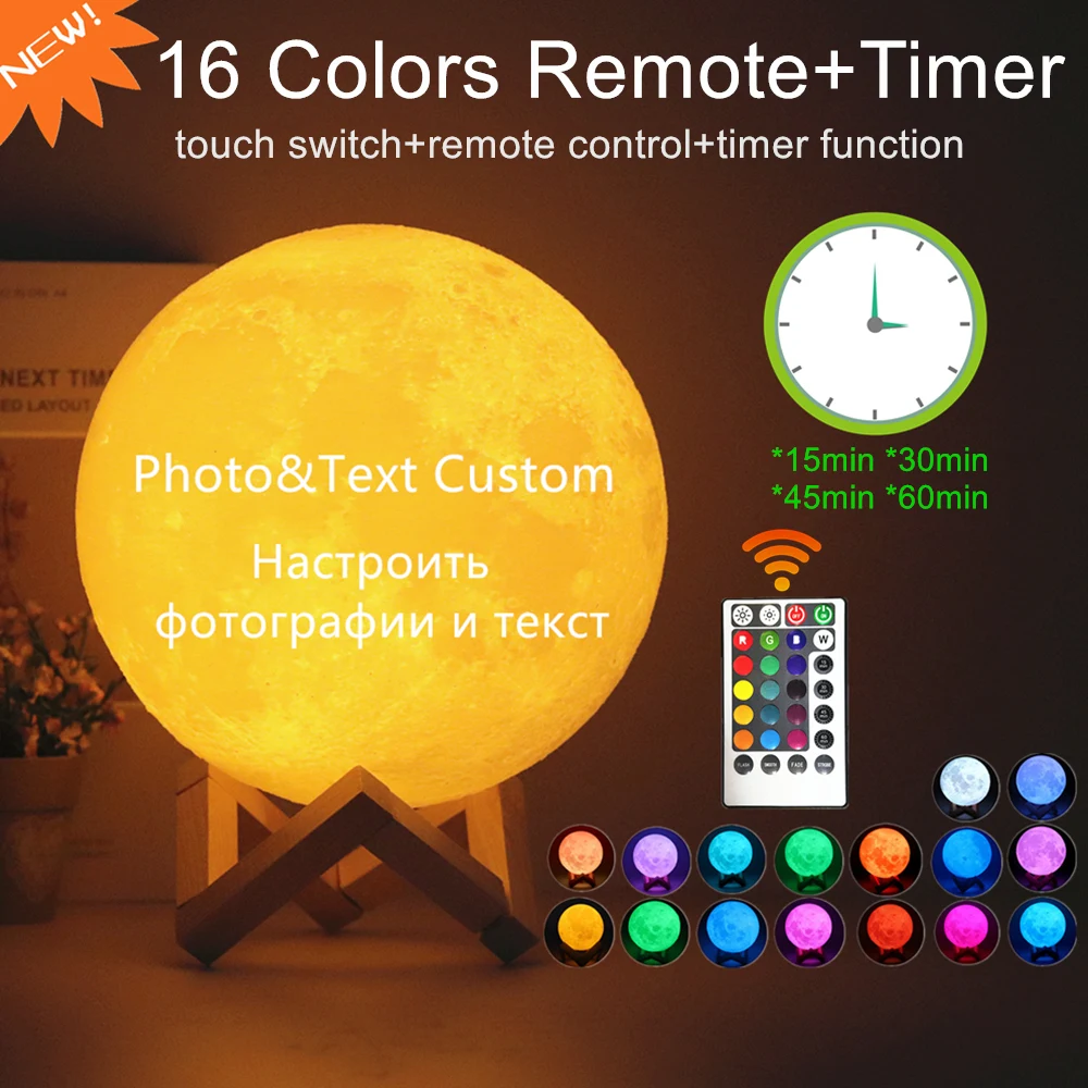 Светильник-ночник Луна С 3D-принтом, с сенсорным управлением и дистанционным переключателем