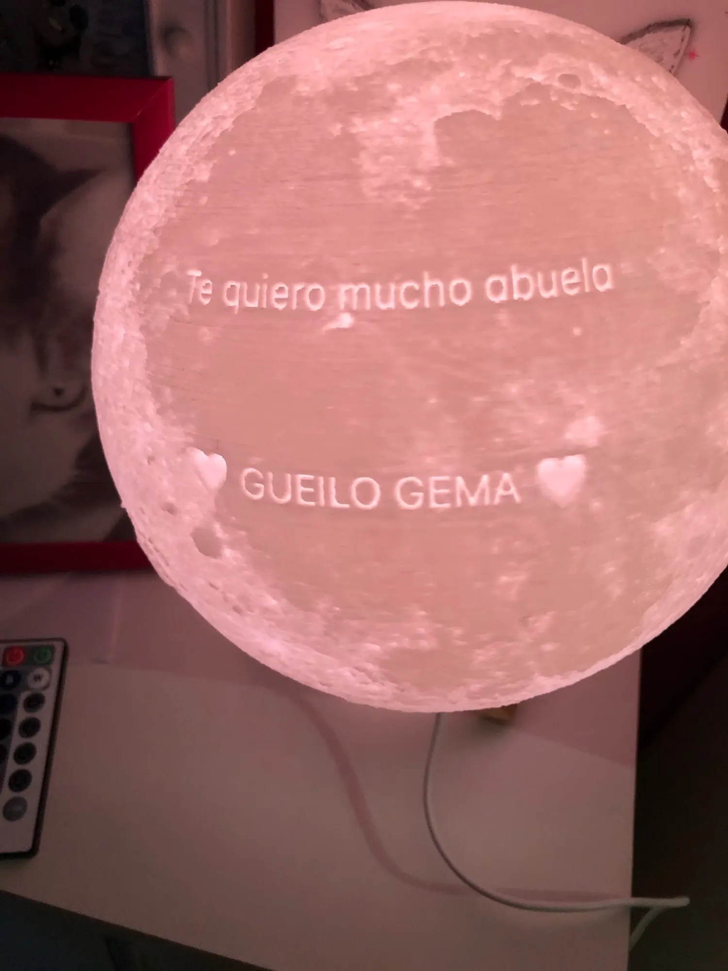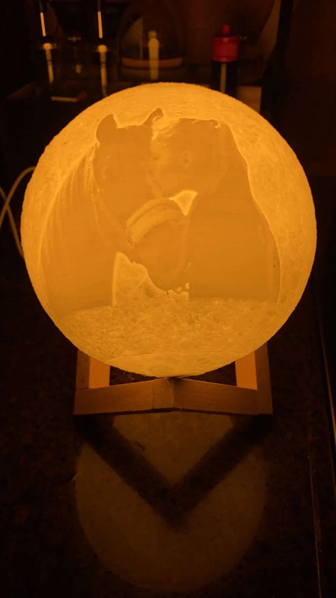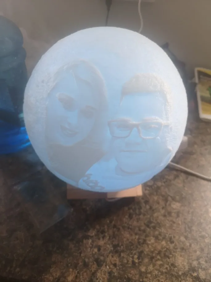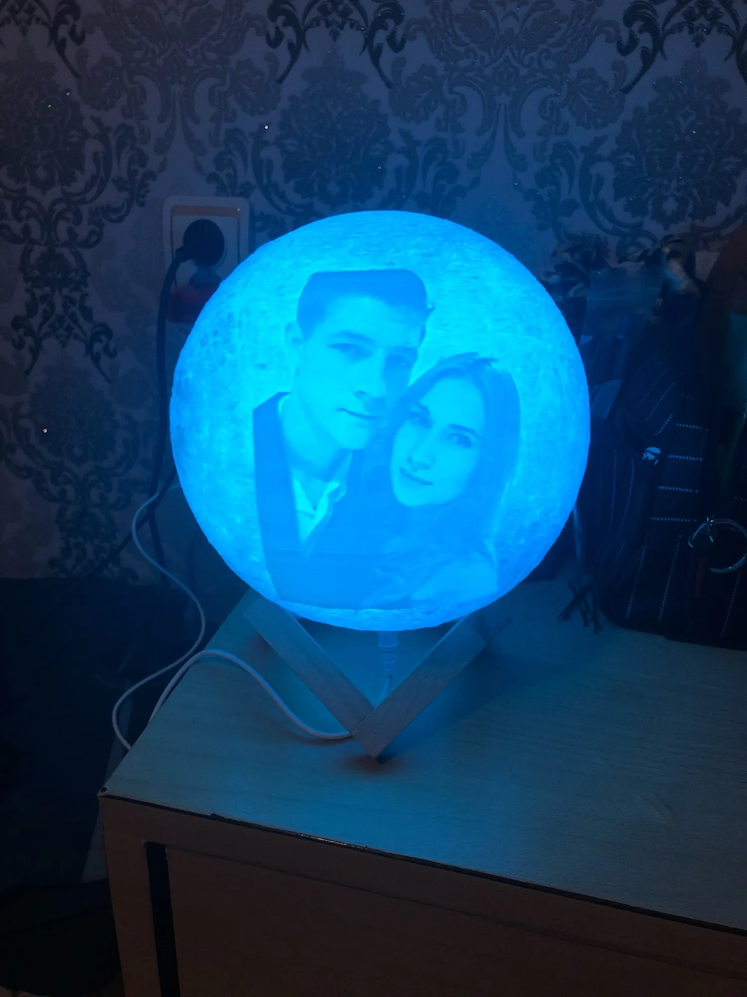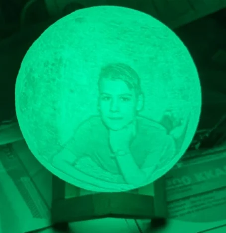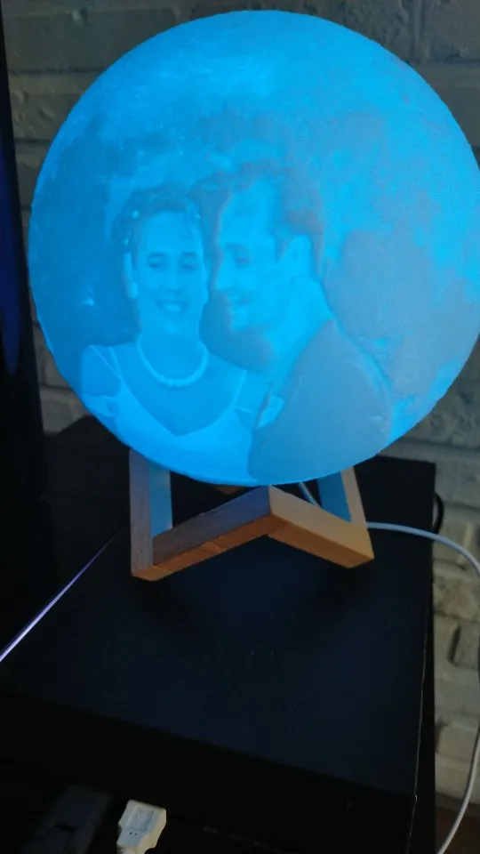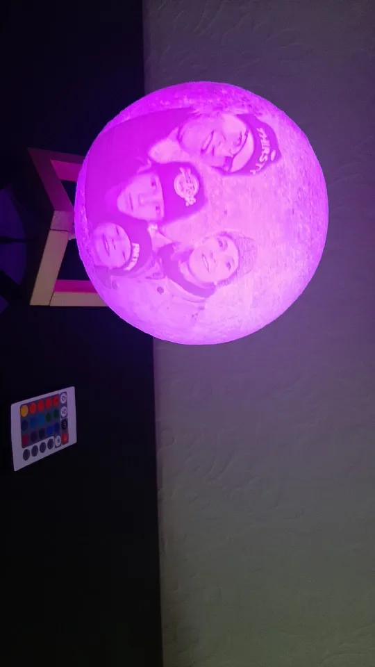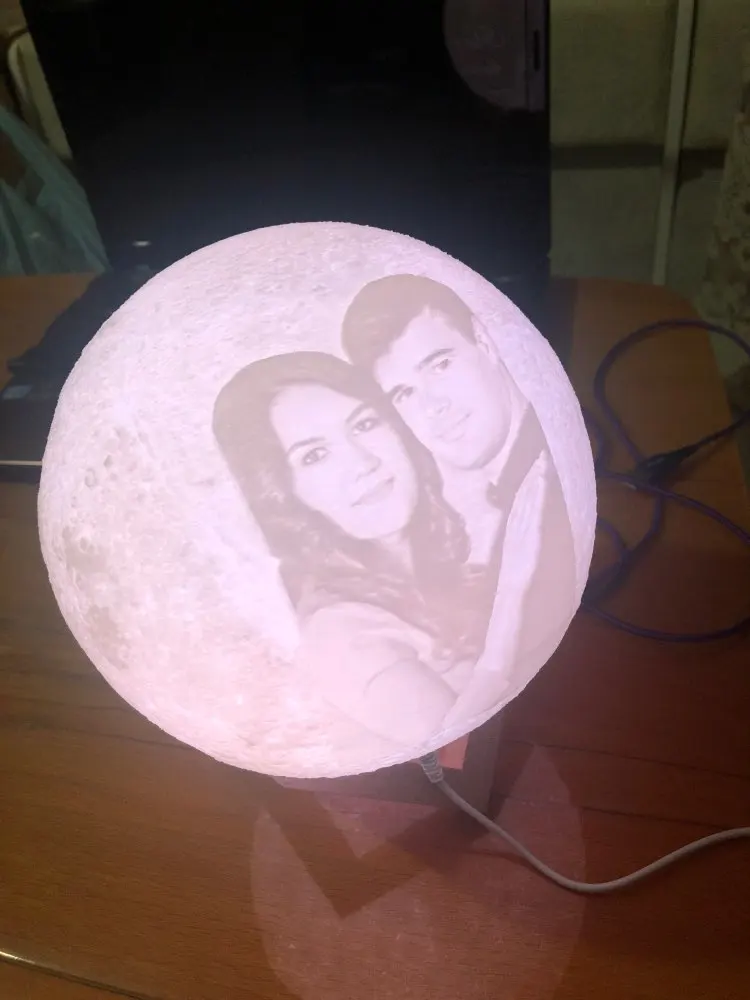 Отличный шарик-Луна. Хорошо выгравирована фотография, красиво уютно и создаёт романтику.