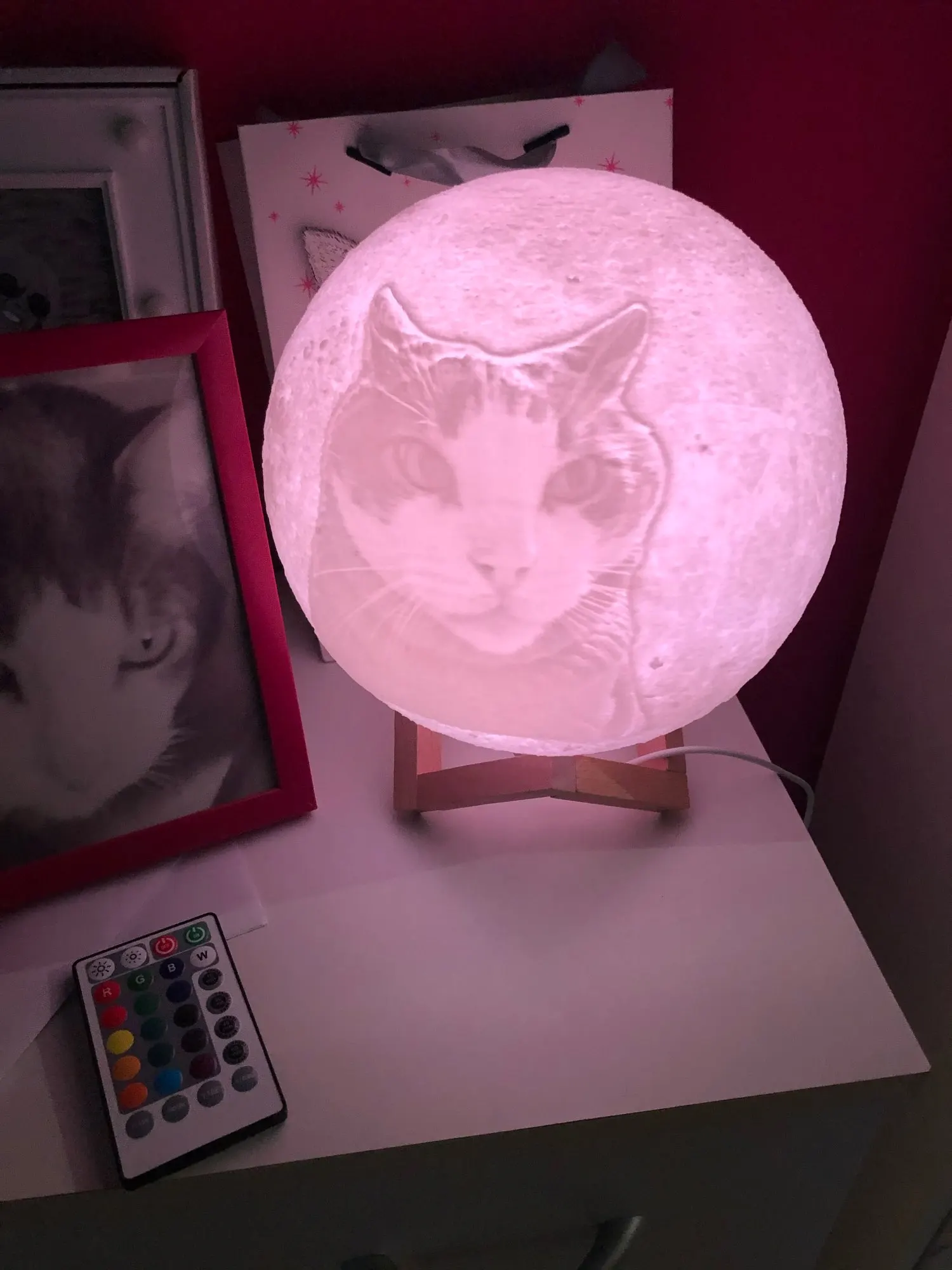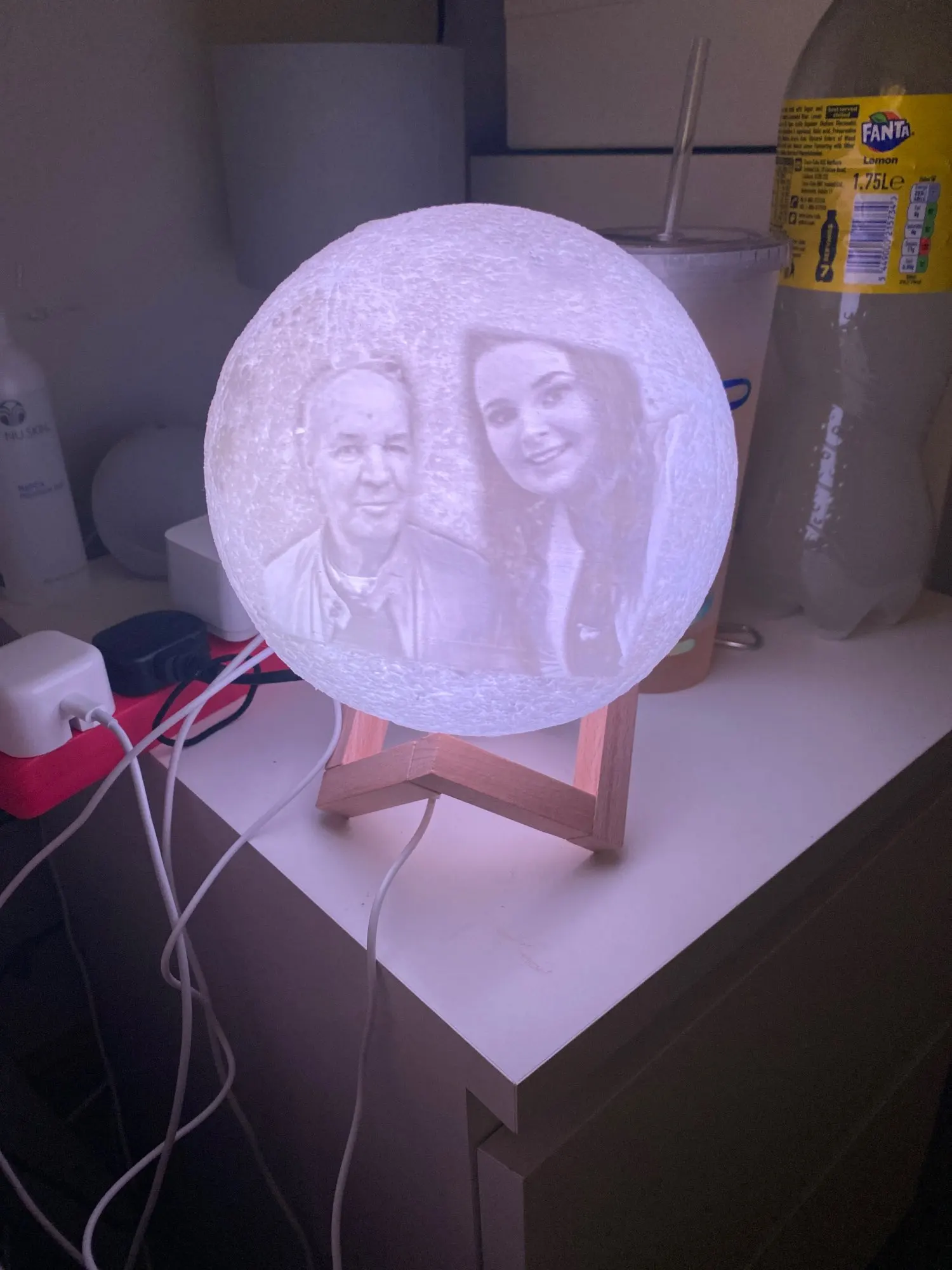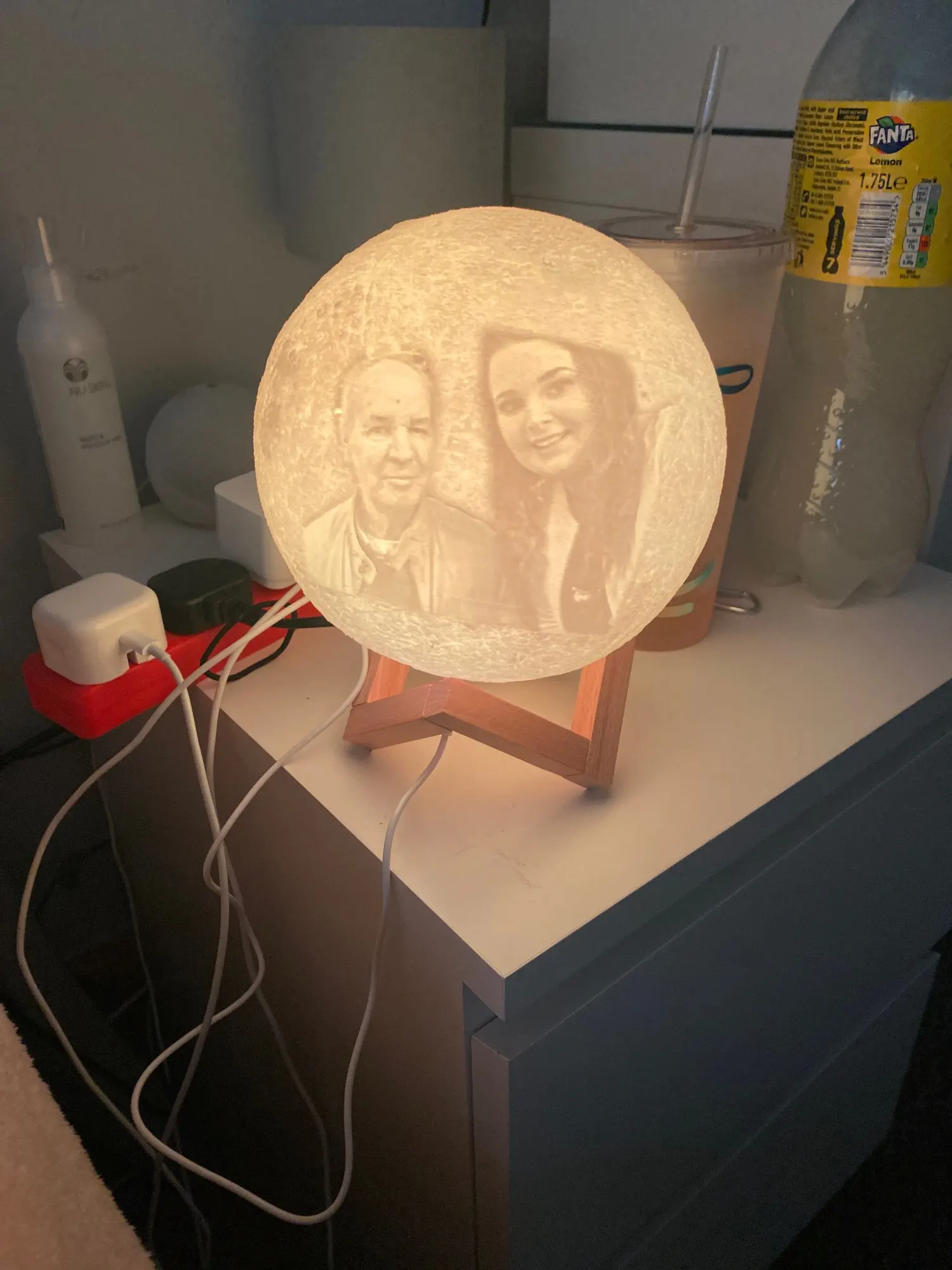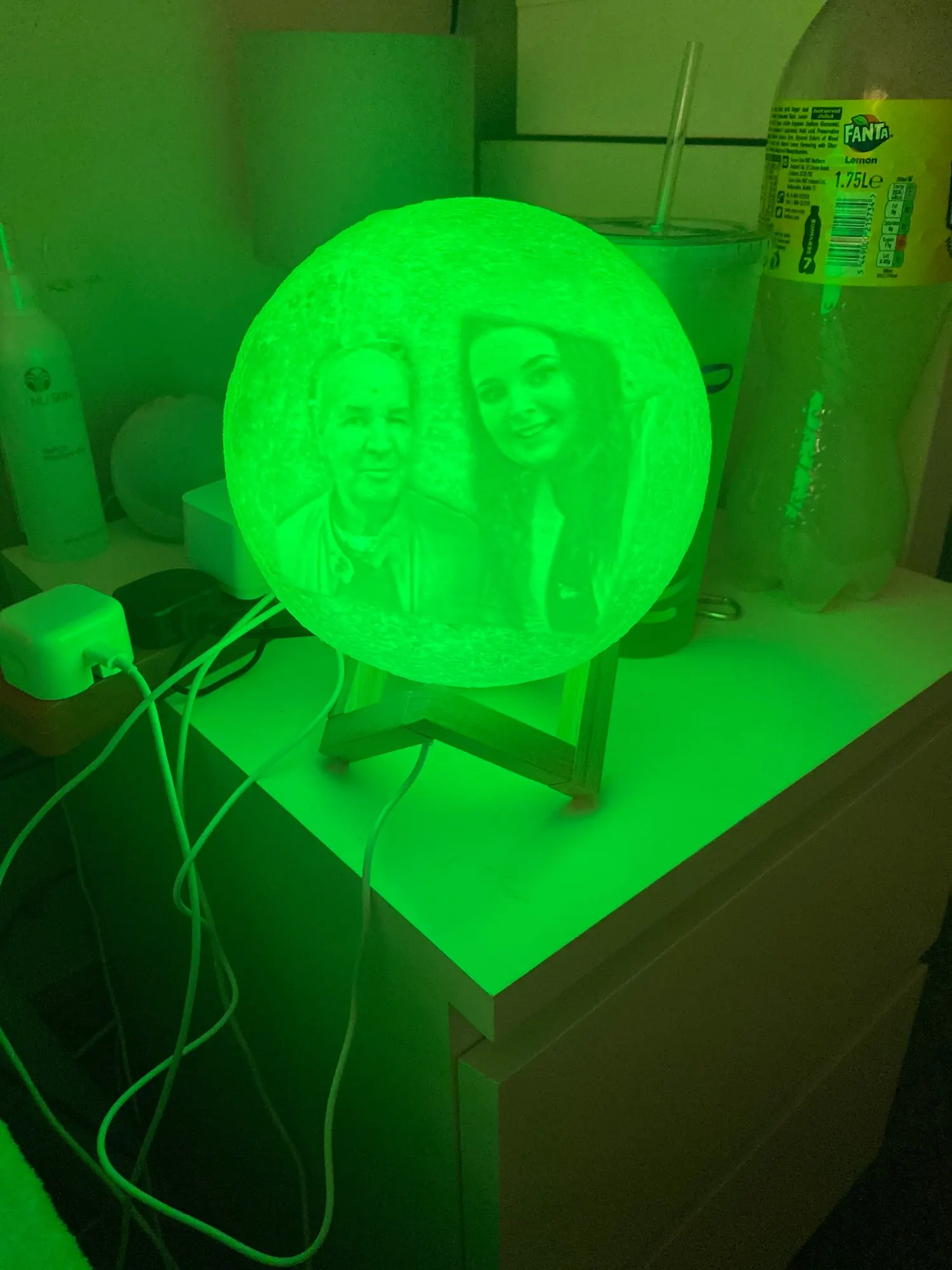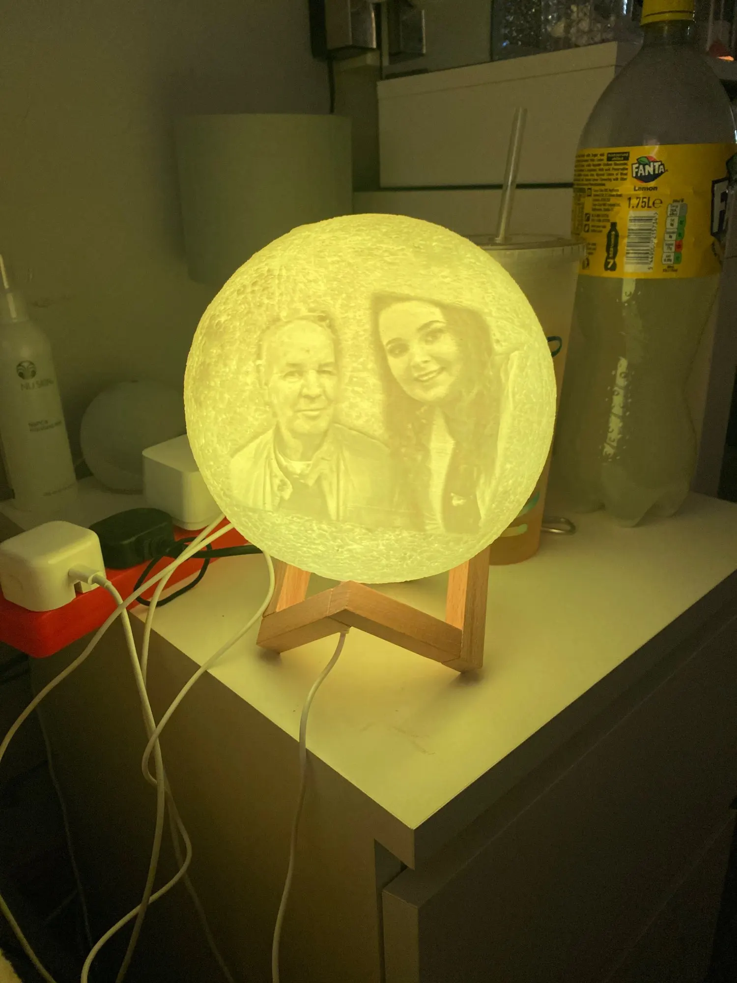 Отличный шарик-Луна. Хорошо выгравирована фотография, красиво уютно и создаёт романтику.
