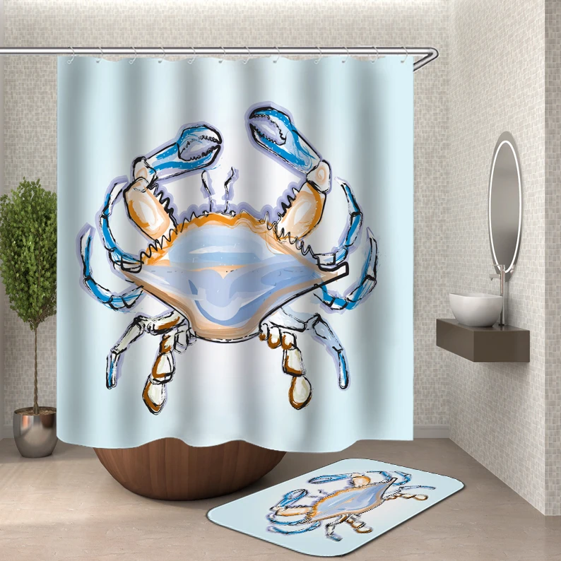 Морская занавеска для душа, мультяшная Морская водонепроницаемая шт...
