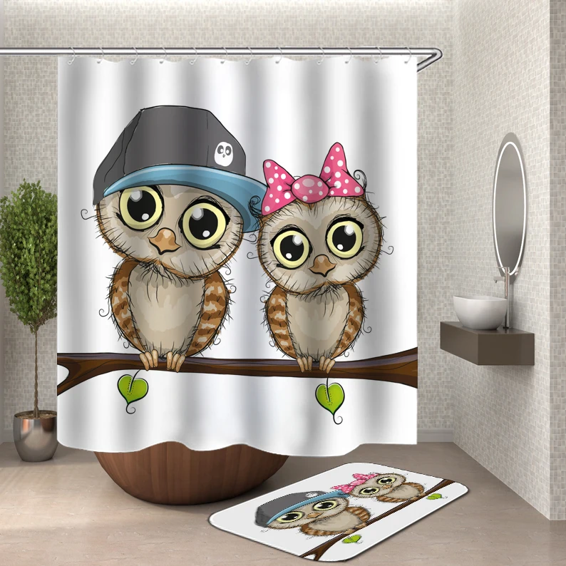 Водонепроницаемая занавеска или коврик для ванной, мультяшная душевая занавеска, с крючками, 3d, шторы для ванной или душа